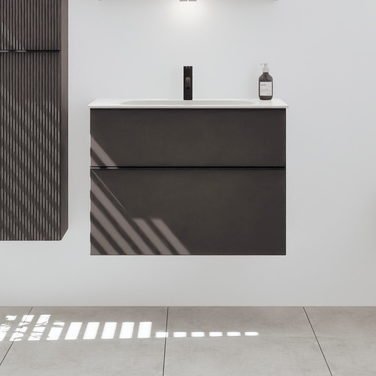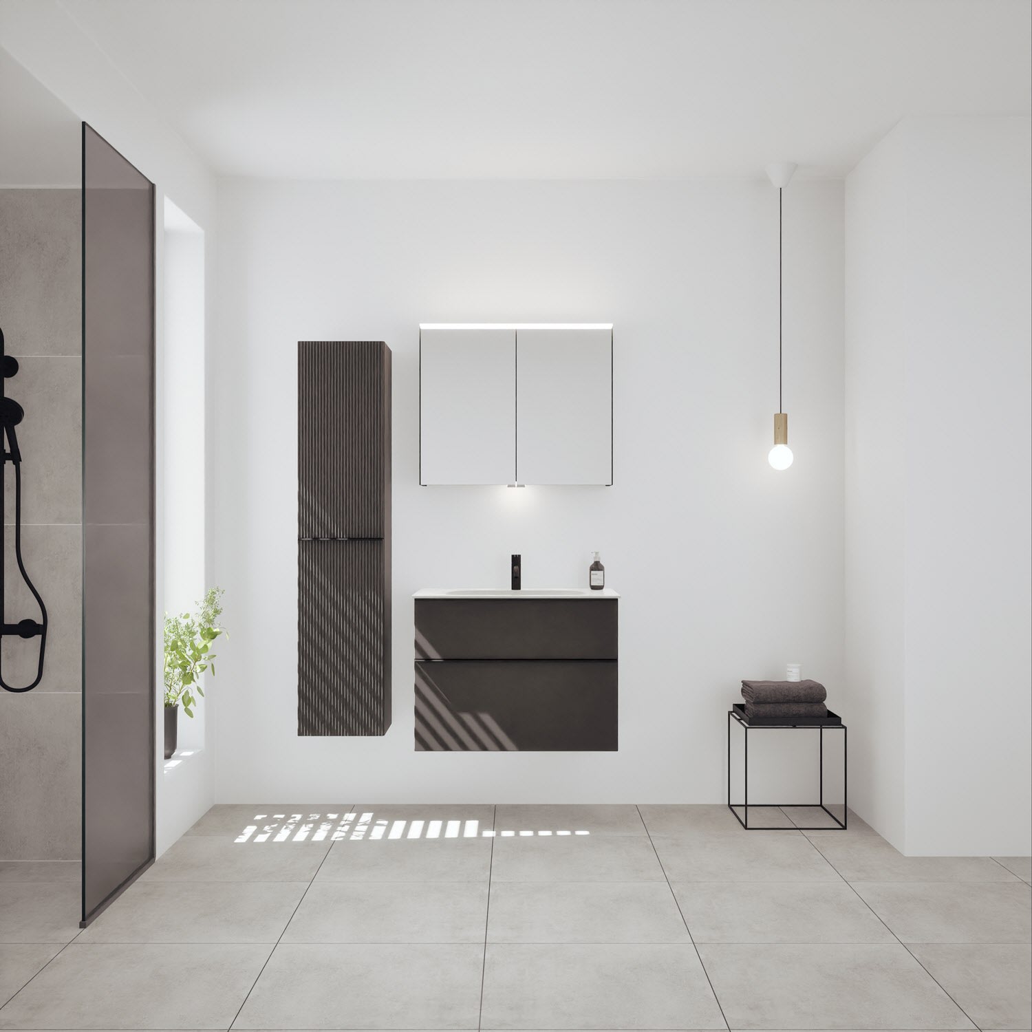 burgbad Fiumo 2.0 Mineralguss-Waschtisch mit Waschtischunterschrank 82 cm, mit Griff G0200