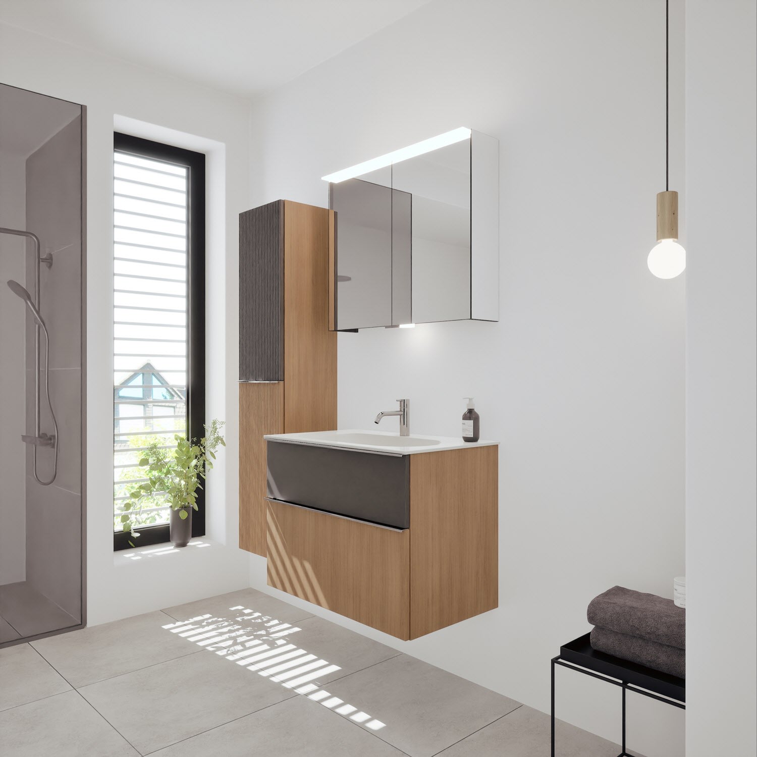 burgbad Fiumo 2.0 Spiegelschrank 80,6 cm mit LED-Aufsatzleuchte und Waschplatzbeleuchtung, 2 Spiegeltüren
