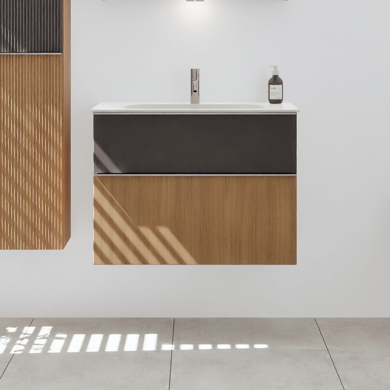 burgbad Fiumo 2.0 Mineralguss-Waschtisch mit Waschtischunterschrank 82 cm, mit Griff G0146