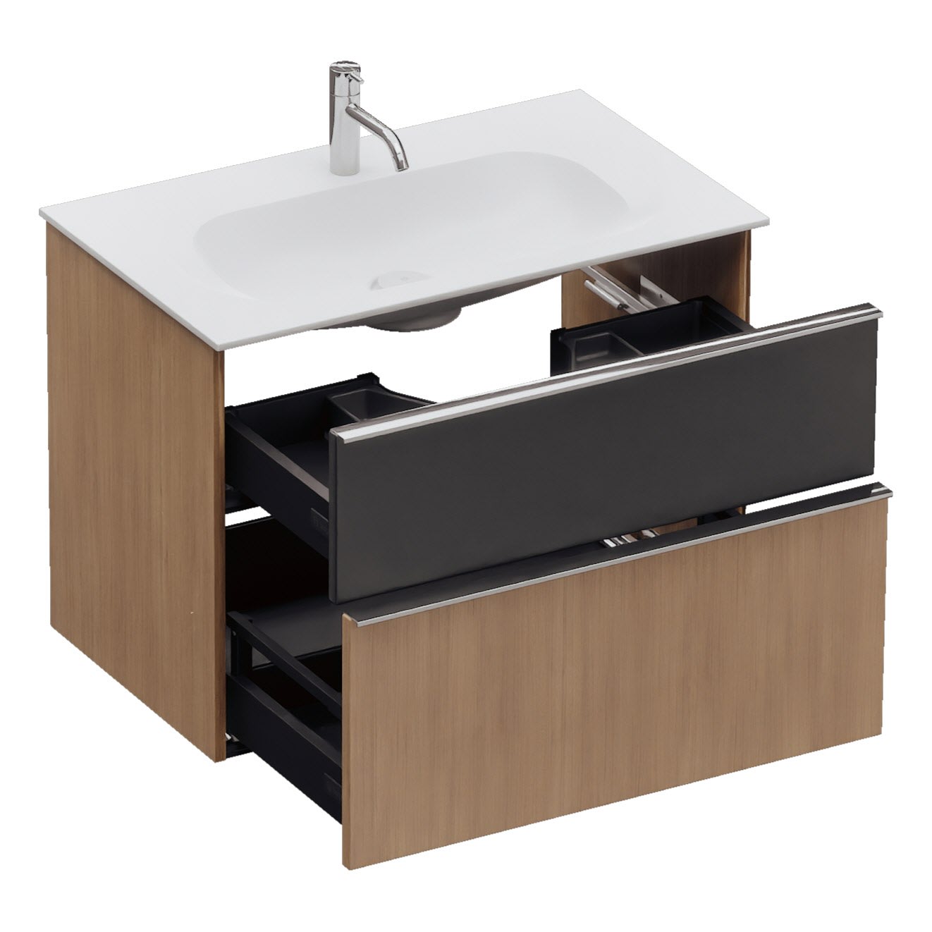 - 1 Schublade oben: 35 cm tief, mit Siphonausschnitt und Inneneinteilung