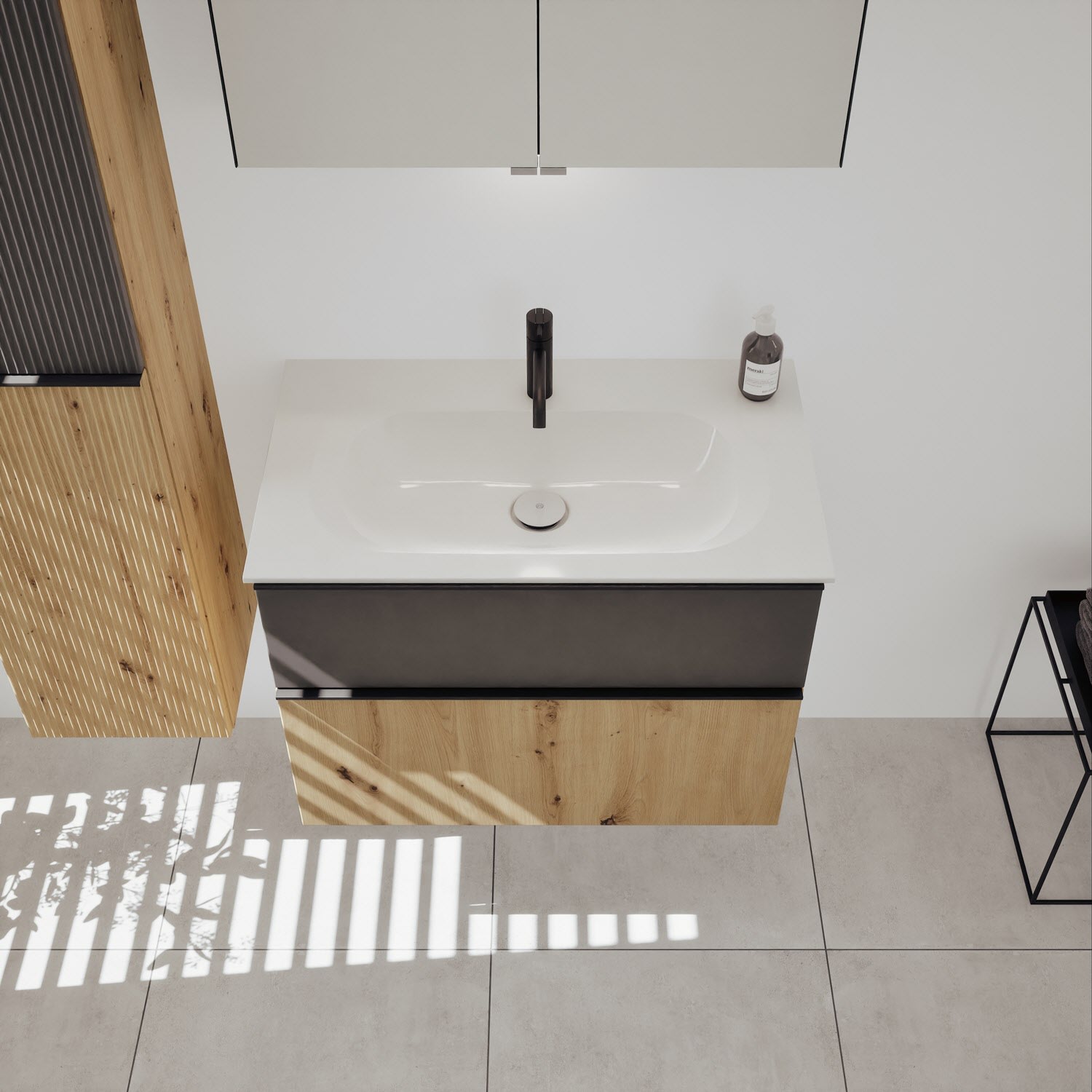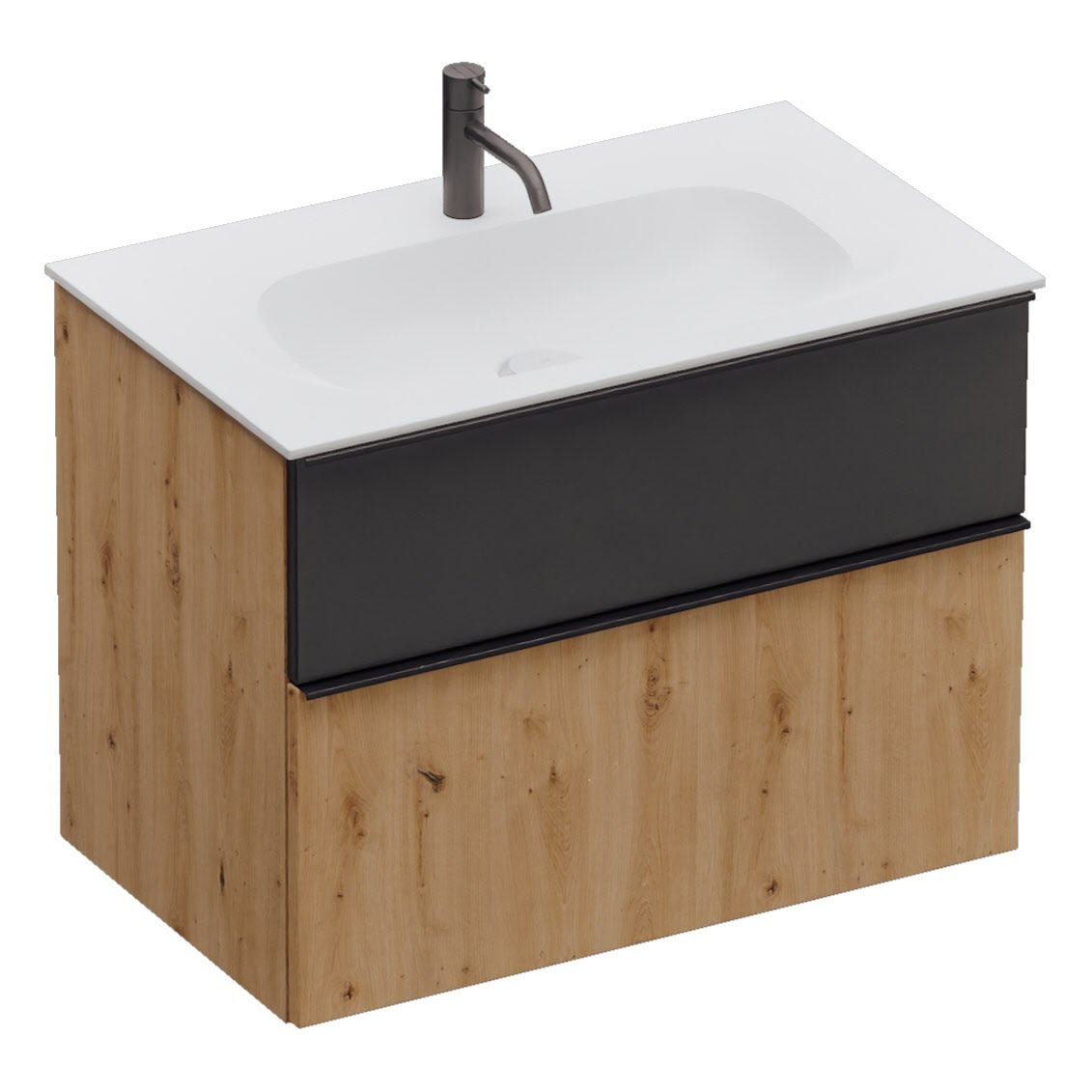 burgbad Fiumo 2.0 Mineralguss-Waschtisch mit Waschtischunterschrank 82 cm, mit Griff G0200