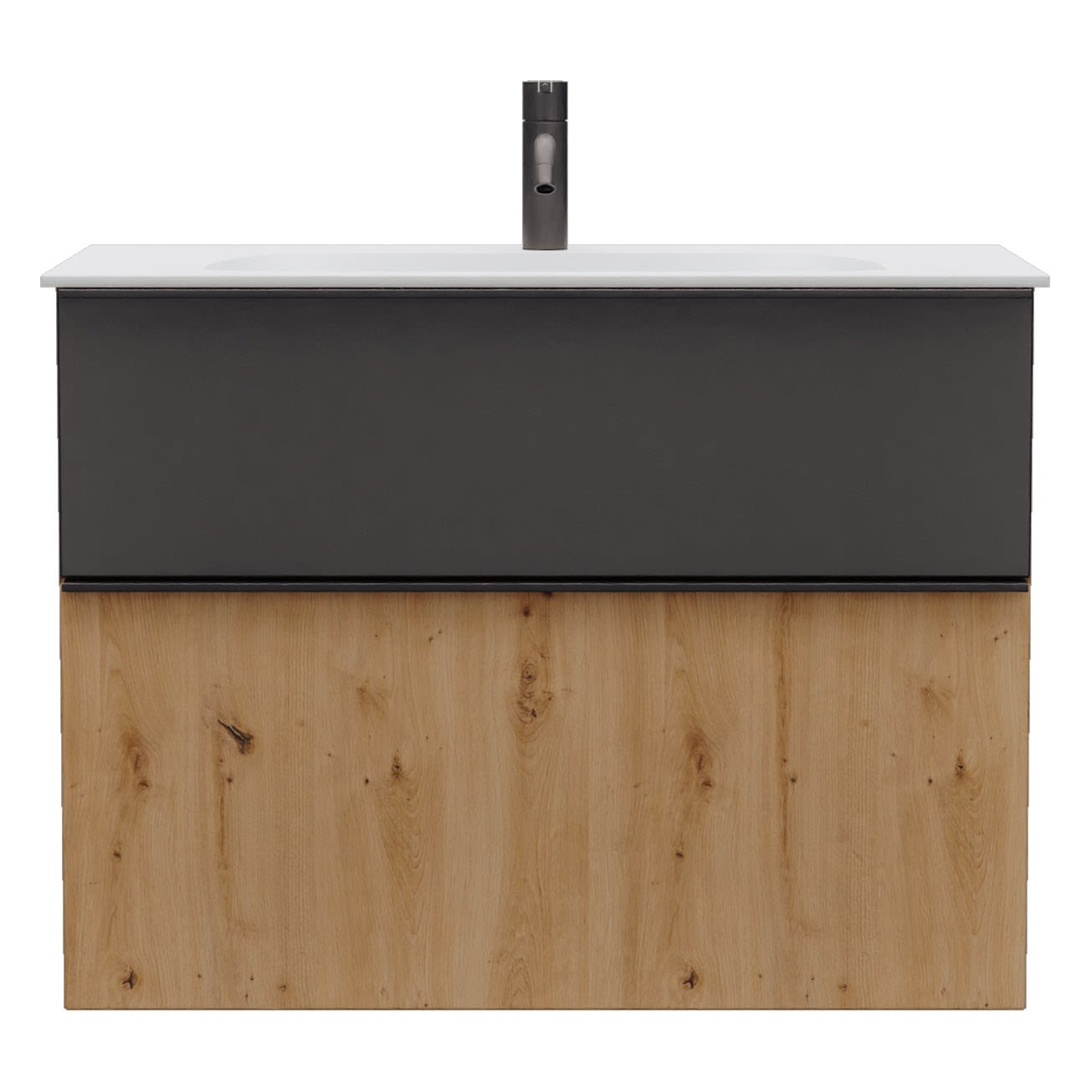 - 1 Schublade oben: 35 cm tief, mit Siphonausschnitt und Inneneinteilung