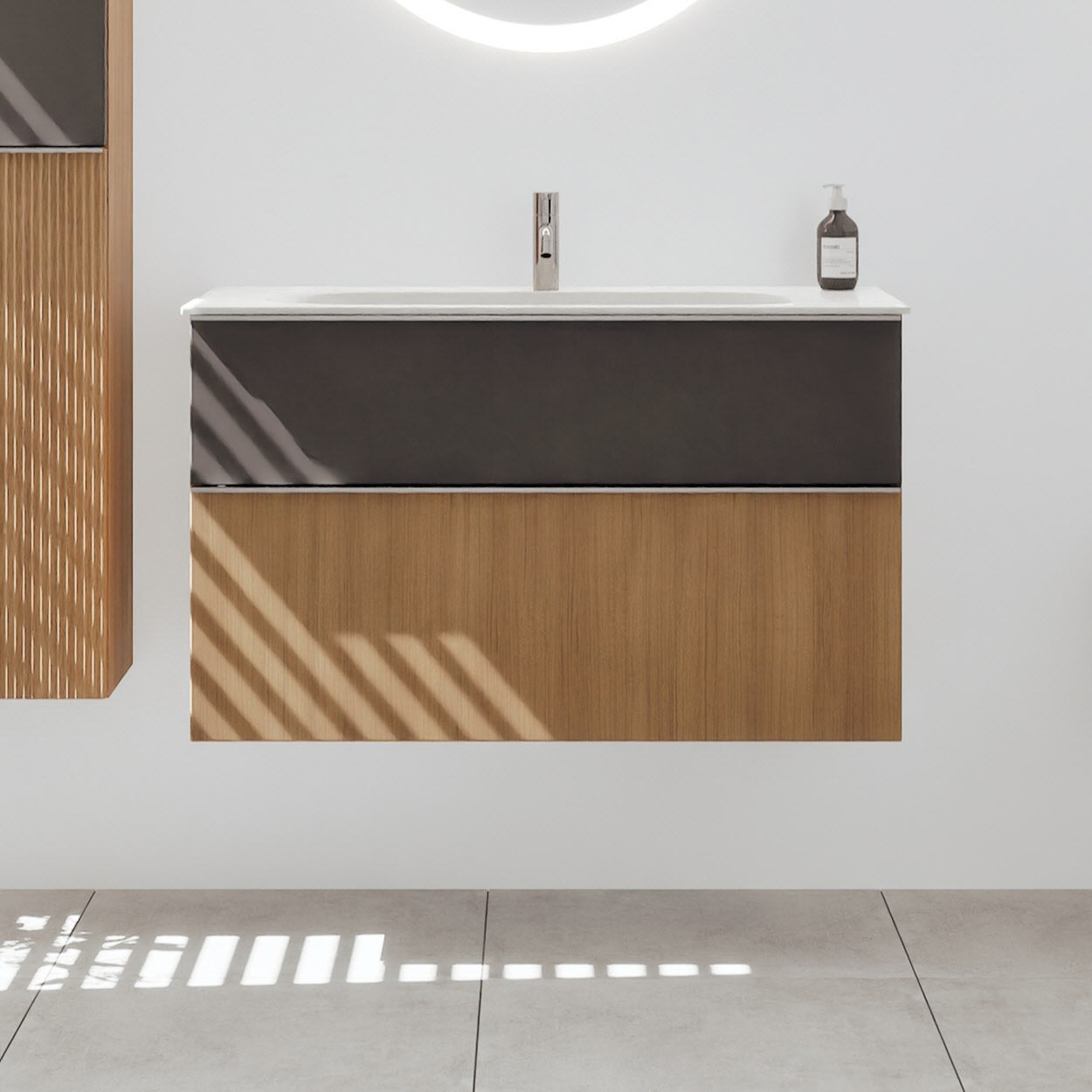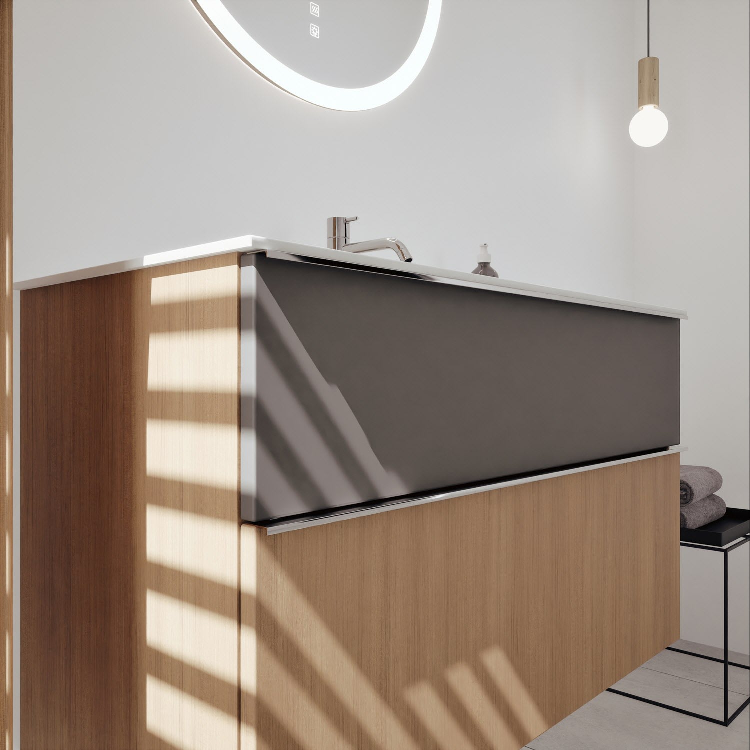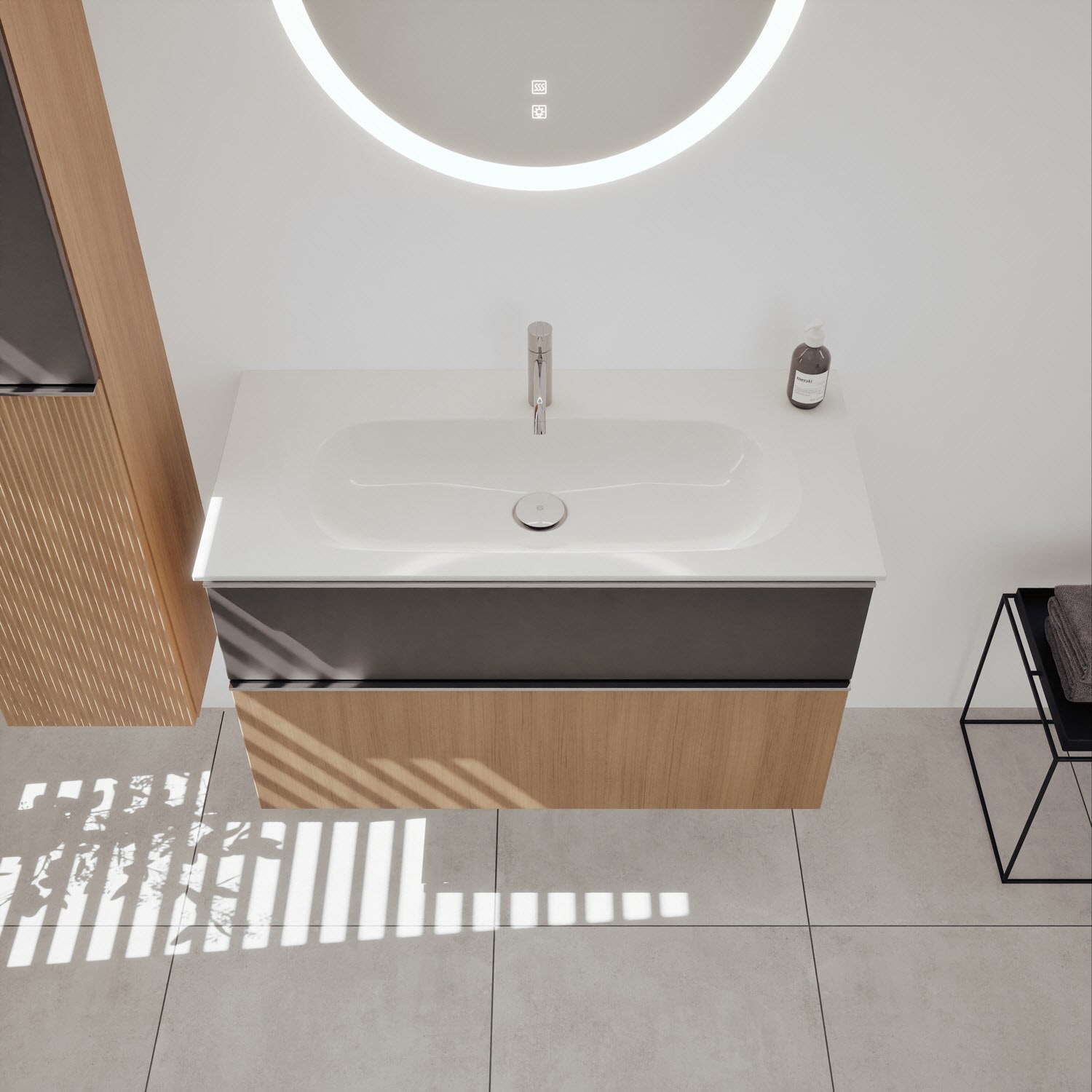 burgbad Fiumo 2.0 Mineralguss-Waschtisch mit Waschtischunterschrank 102 cm, mit Griff G0146