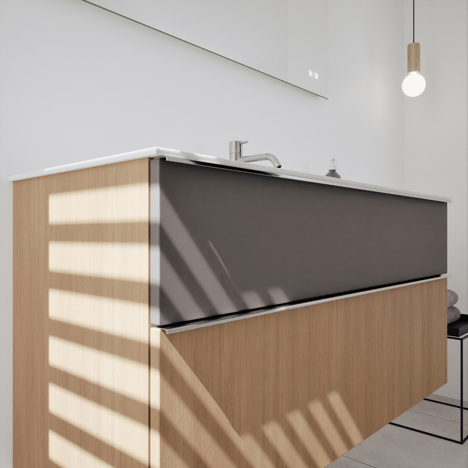 burgbad Fiumo 2.0 Badmöbelset 62 cm mit Waschtisch mit Unterschrank mit Griff G0146 und Spiegelschrank