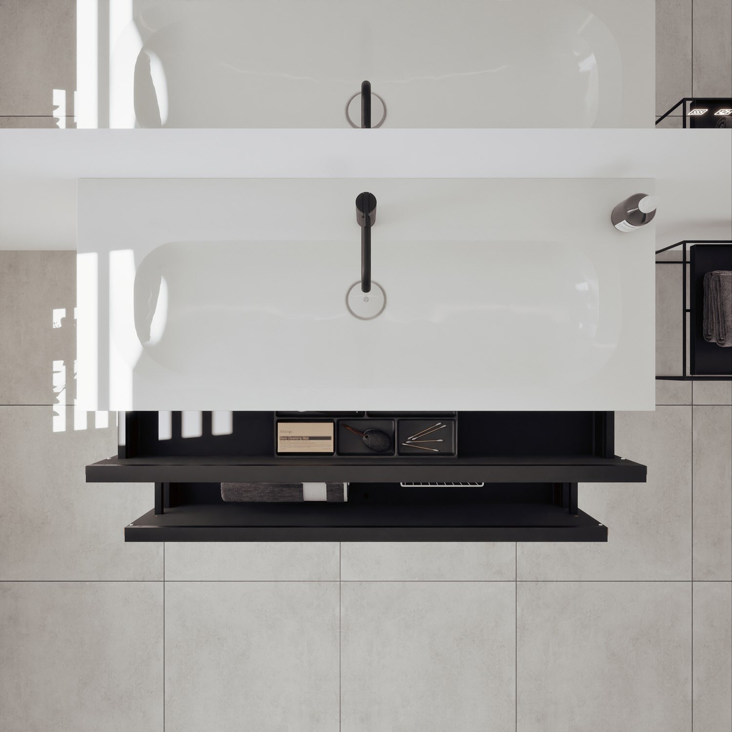 burgbad Fiumo 2.0 Mineralguss-Waschtisch mit Waschtischunterschrank 122 cm, mit Griff G0200