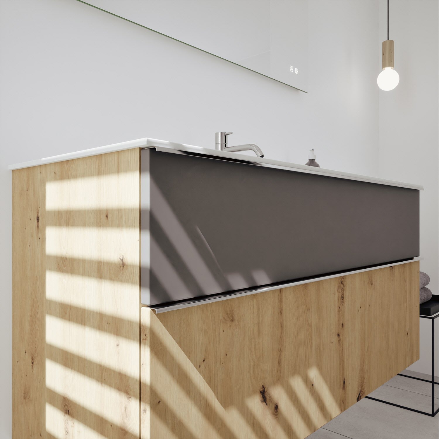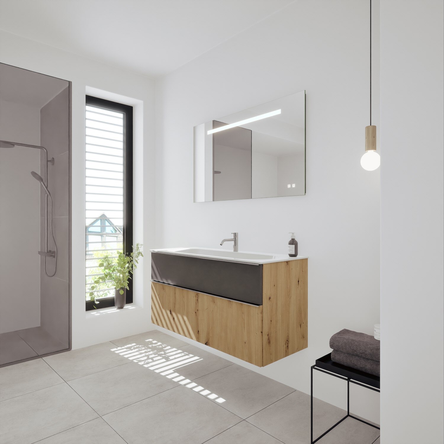 burgbad Fiumo 2.0 Badmöbelset 62 cm mit Waschtisch mit Unterschrank mit Griff G0146 und Spiegelschrank