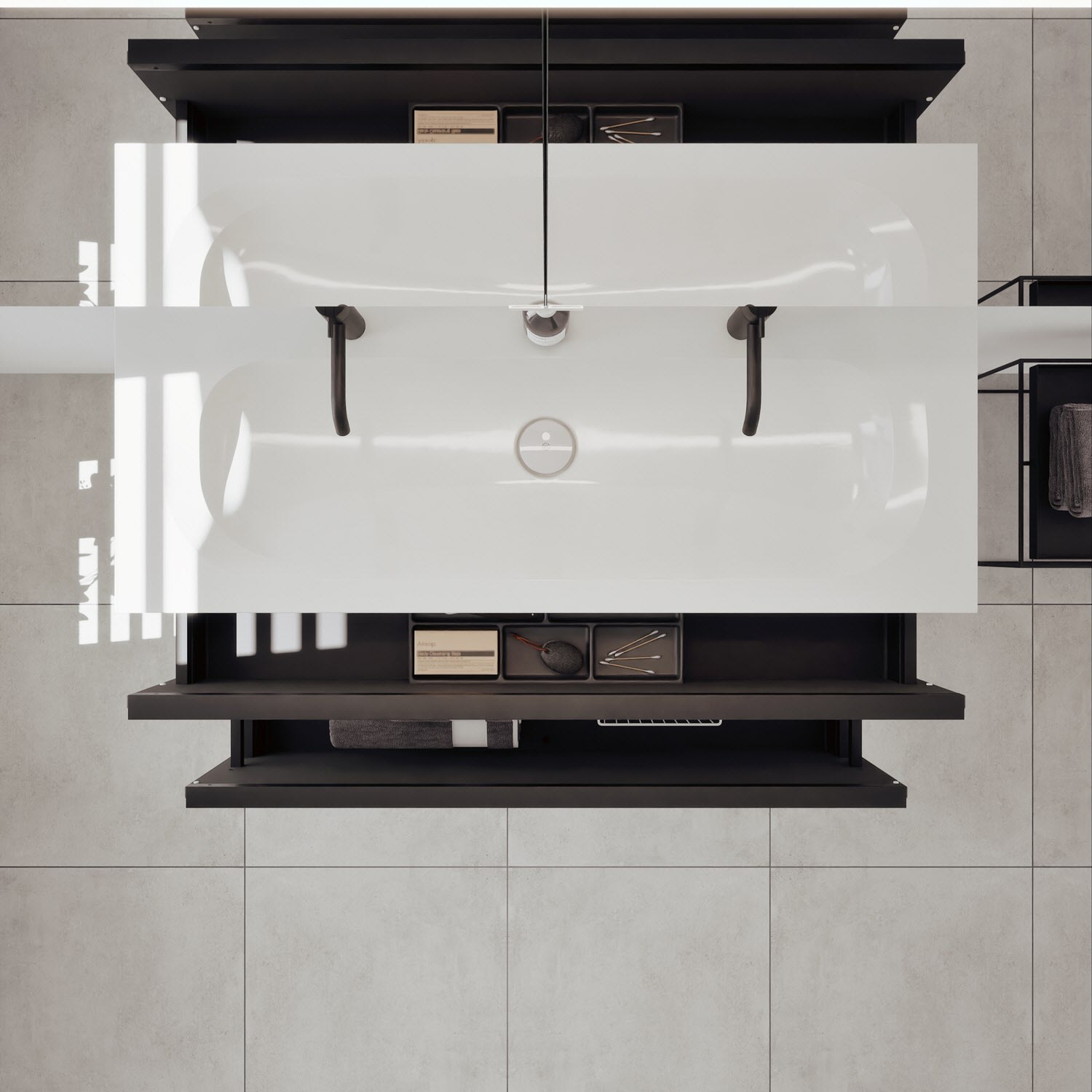 burgbad Fiumo 2.0 Spiegelschrank 120,6 cm mit LED-Aufsatzleuchte und Waschplatzbeleuchtung, 2 Spiegeltüren