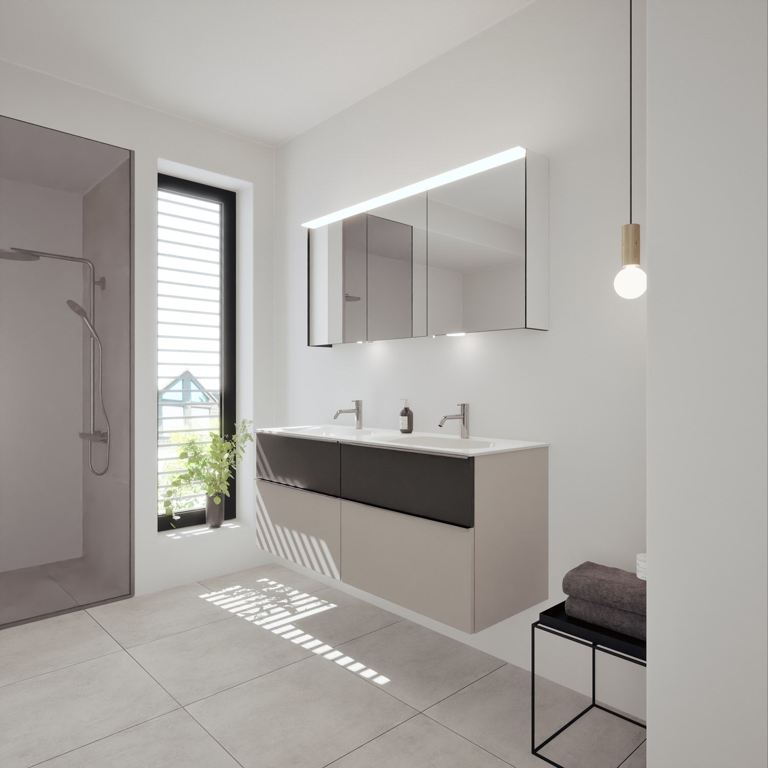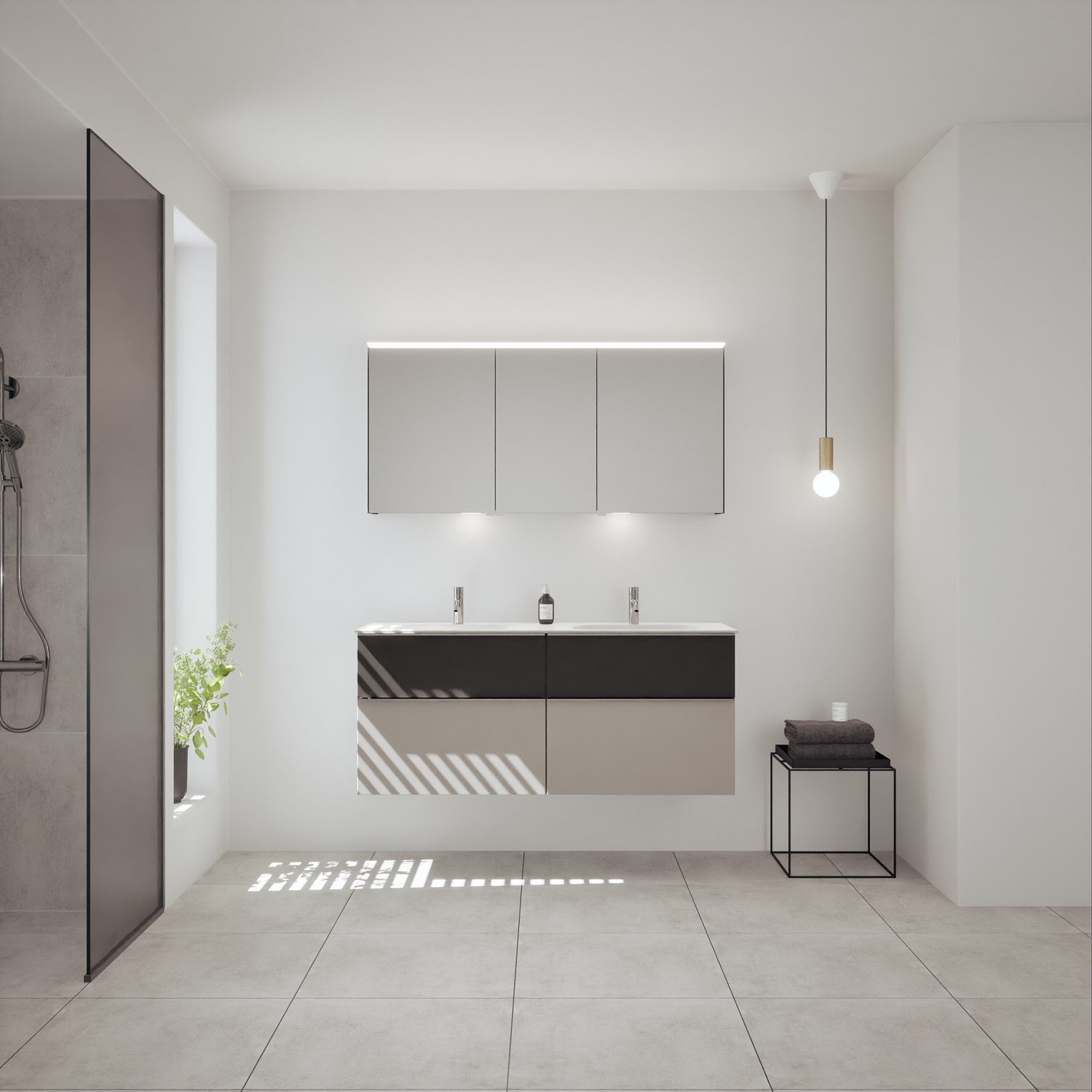 burgbad Fiumo 2.0 Spiegelschrank 140,6 cm mit LED-Aufsatzleuchte und Waschplatzbeleuchtung, 3 Spiegeltüren
