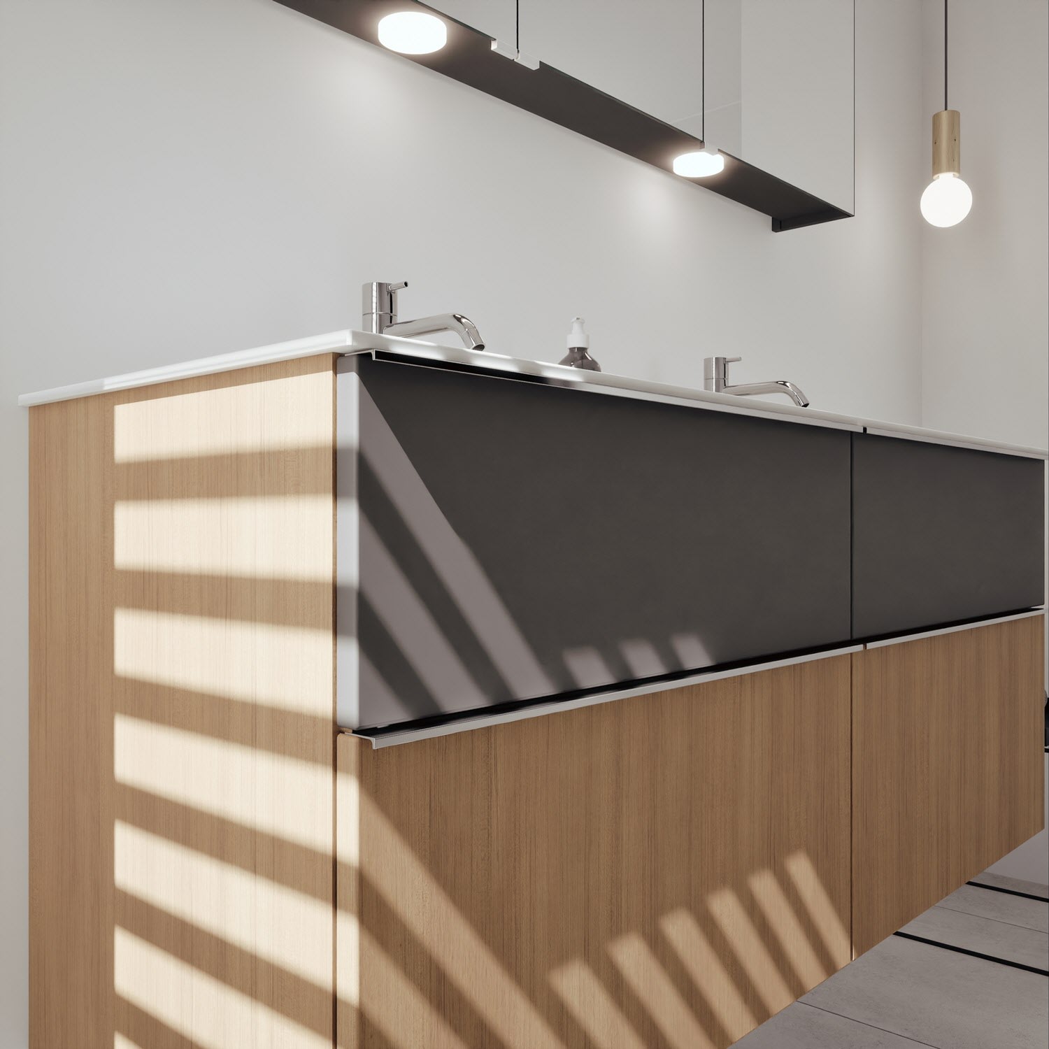 burgbad Fiumo 2.0 Mineralguss-Waschtisch mit Waschtischunterschrank 142 cm, mit Griff G0146