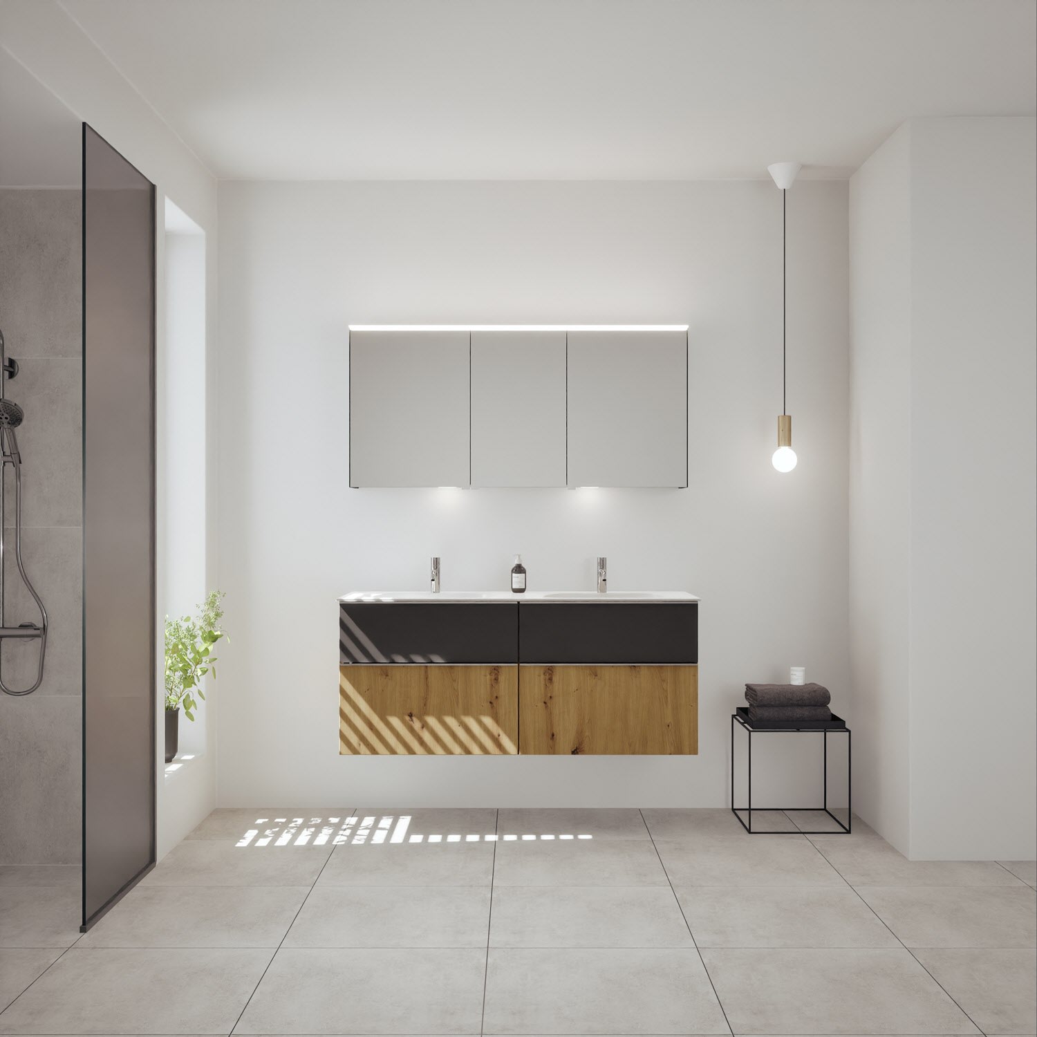 burgbad Fiumo 2.0 Spiegelschrank 140,6 cm mit LED-Aufsatzleuchte und Waschplatzbeleuchtung, 3 Spiegeltüren
