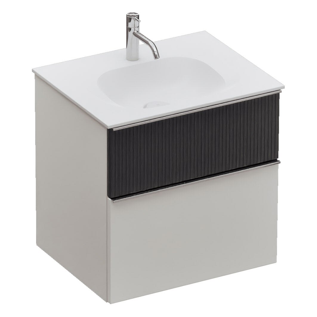 burgbad Fiumo 2.0 Mineralguss-Waschtisch mit Waschtischunterschrank 62 cm, mit Griff G0146