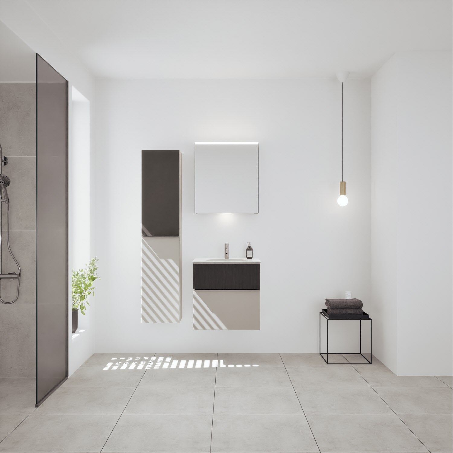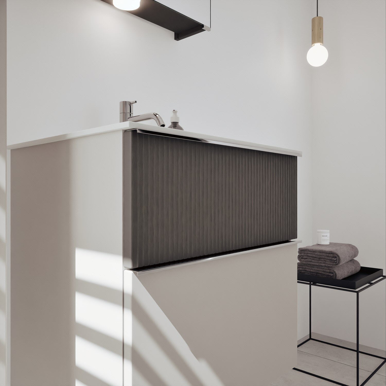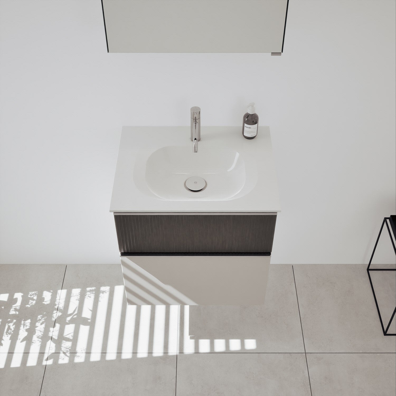 burgbad Fiumo 2.0 Mineralguss-Waschtisch mit Waschtischunterschrank 62 cm, mit Griff G0146