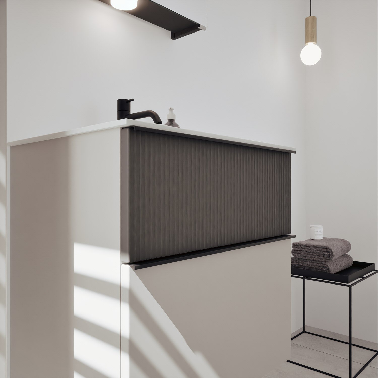 burgbad Fiumo 2.0 Mineralguss-Waschtisch mit Waschtischunterschrank 62 cm, mit Griff G0200