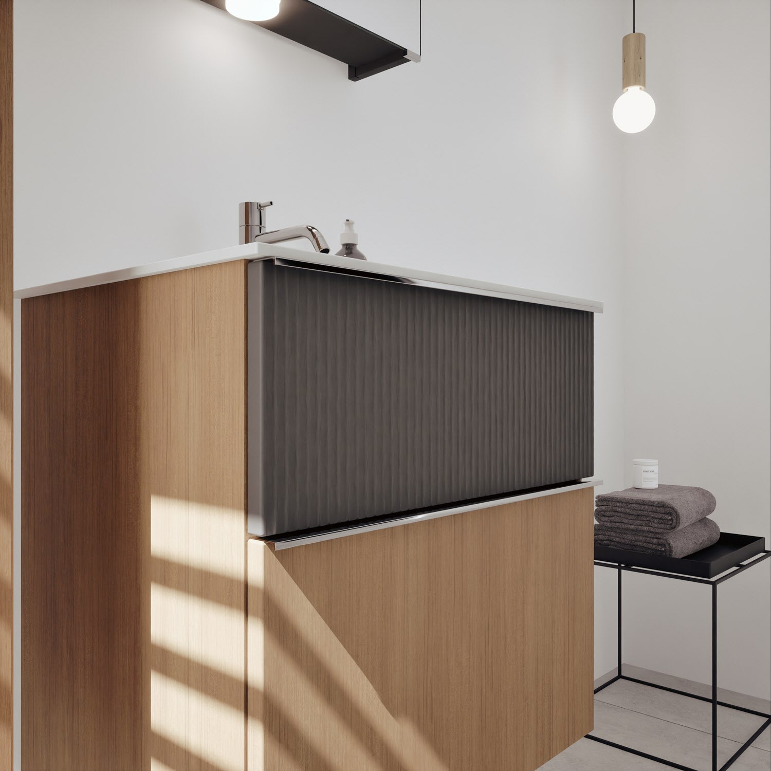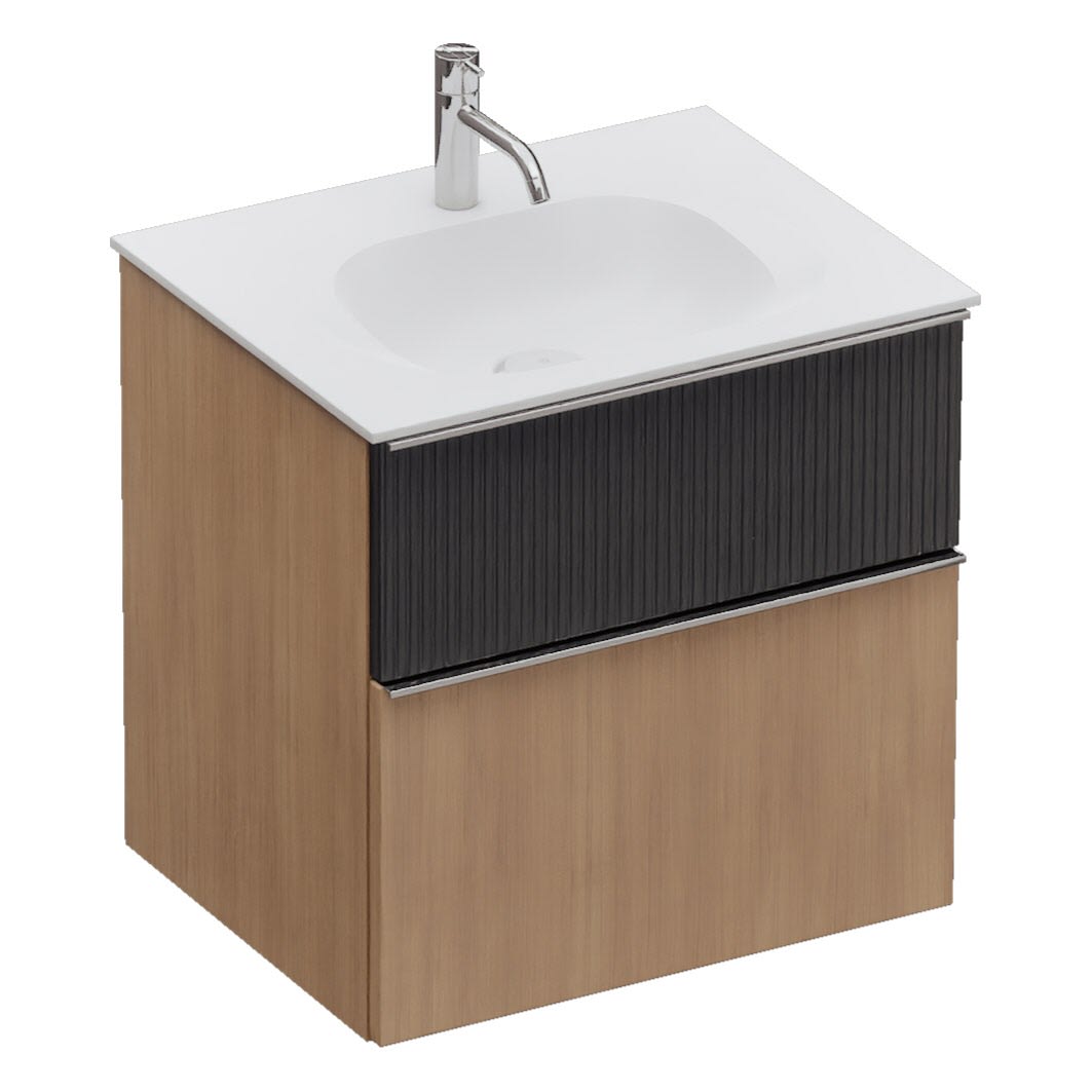 burgbad Fiumo 2.0 Mineralguss-Waschtisch mit Waschtischunterschrank 62 cm, mit Griff G0146