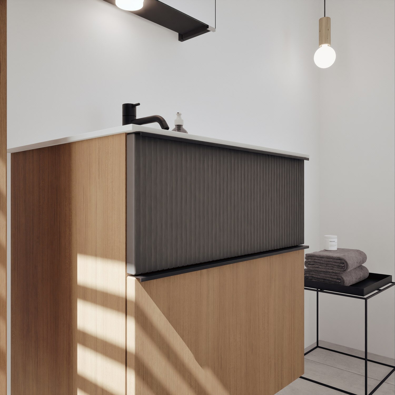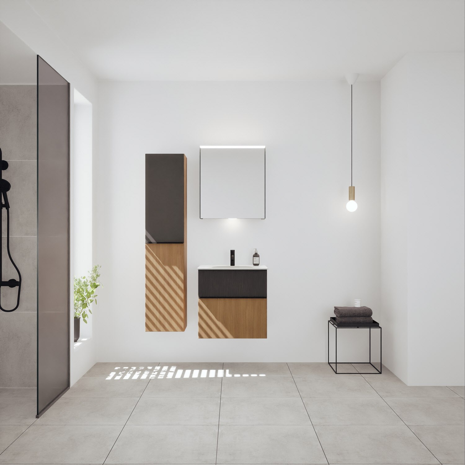 burgbad Fiumo 2.0 Mineralguss-Waschtisch mit Waschtischunterschrank 62 cm, mit Griff G0200