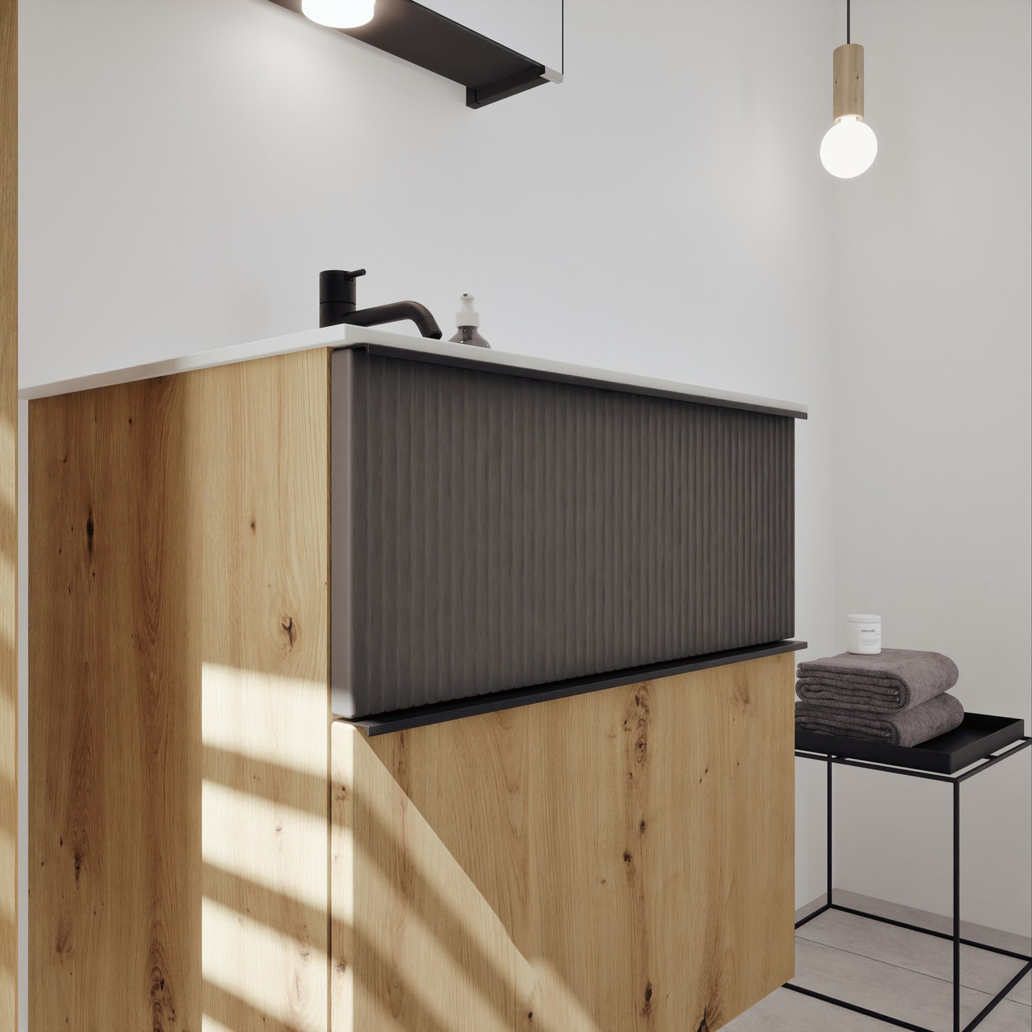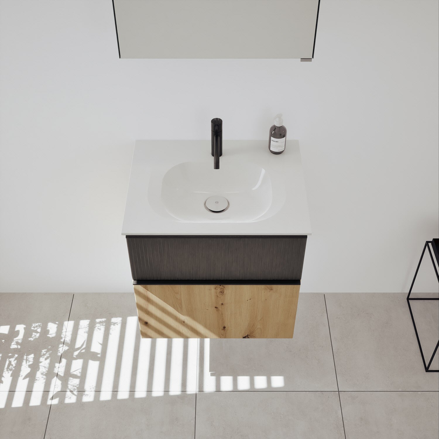 burgbad Fiumo 2.0 Mineralguss-Waschtisch mit Waschtischunterschrank 62 cm, mit Griff G0200
