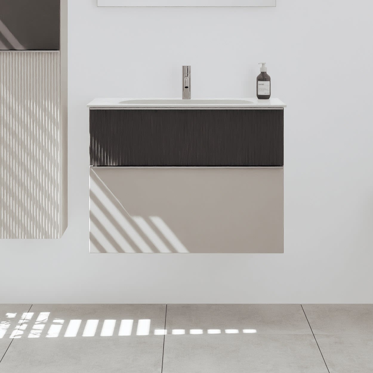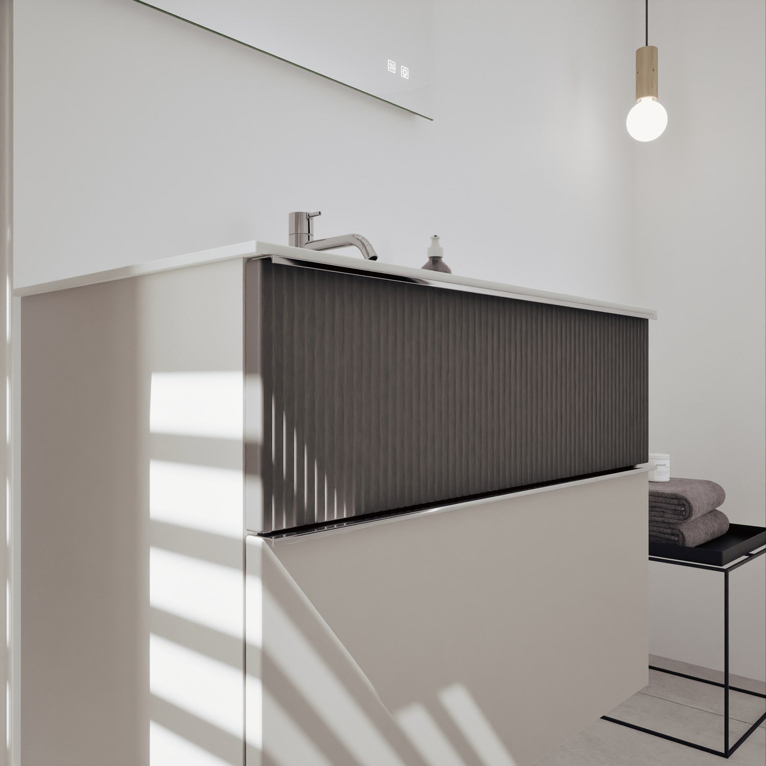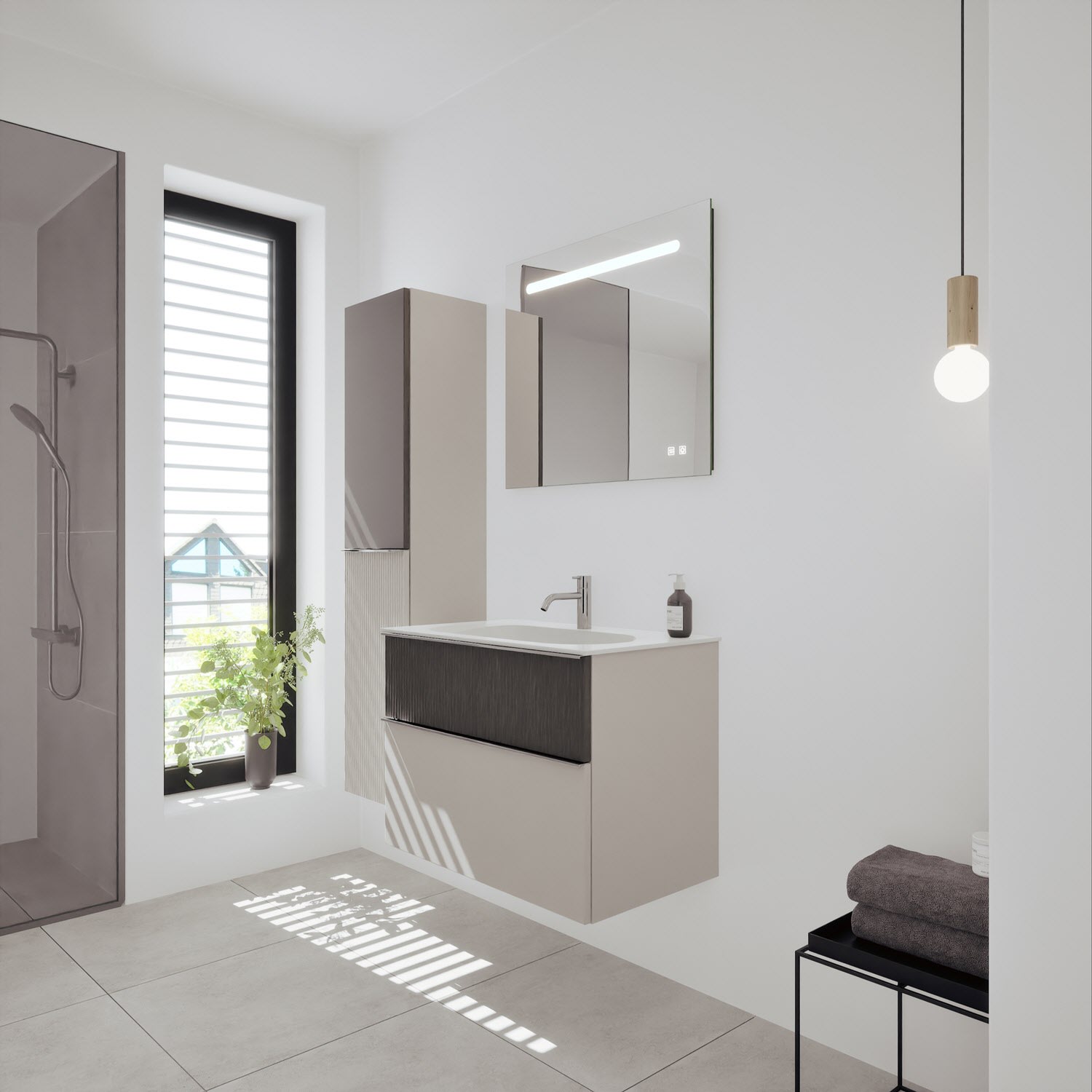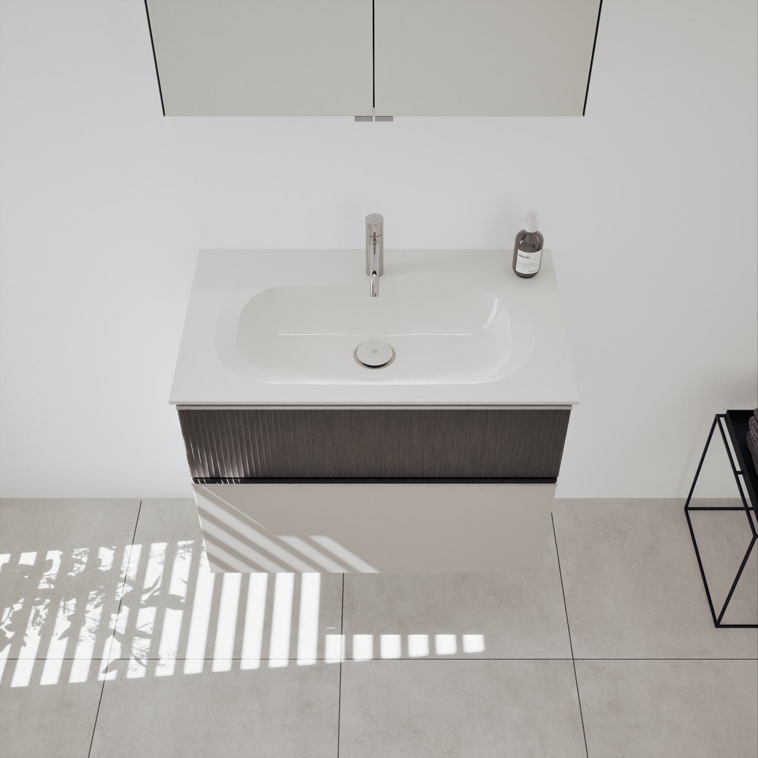 burgbad Fiumo 2.0 Mineralguss-Waschtisch mit Waschtischunterschrank 82 cm, mit Griff G0146