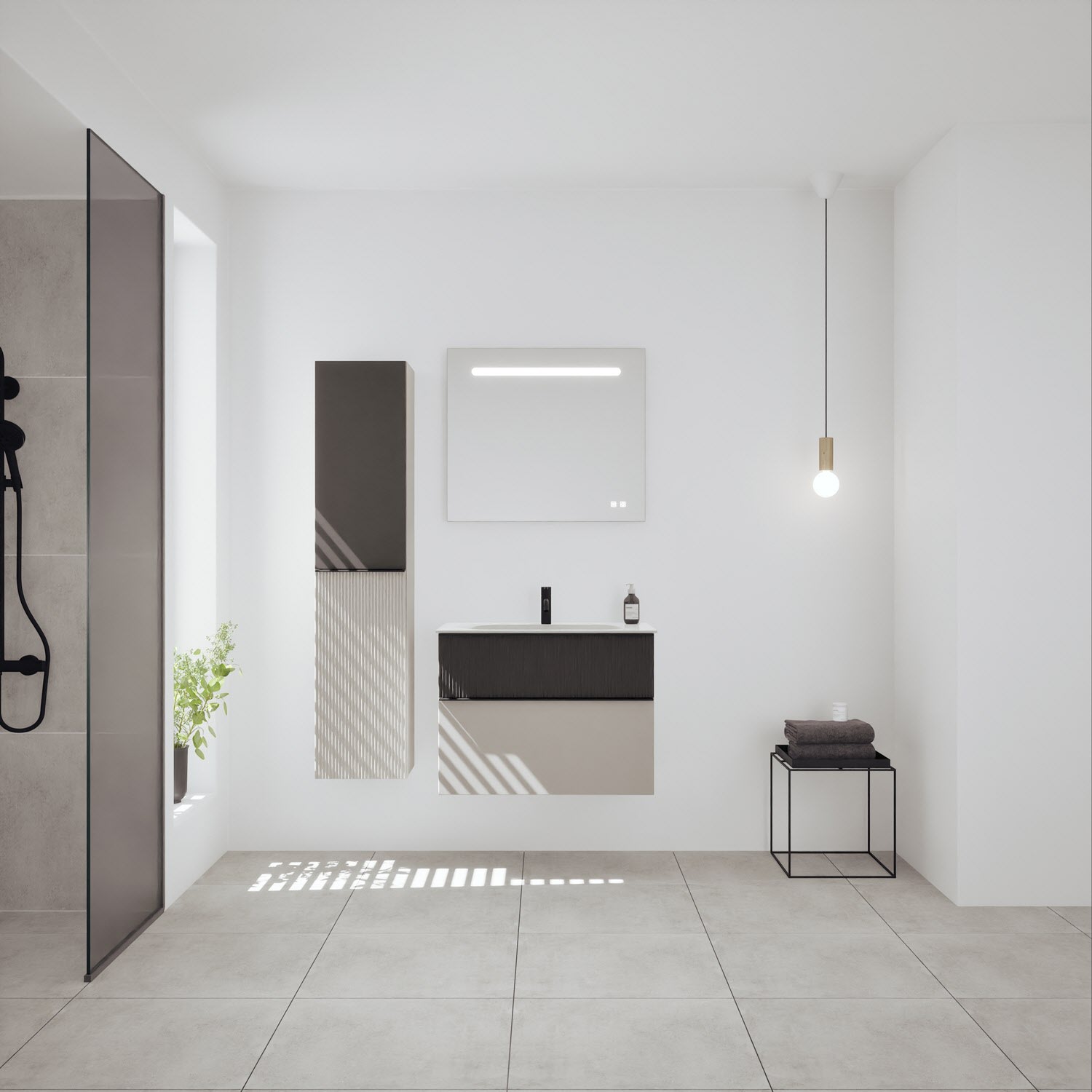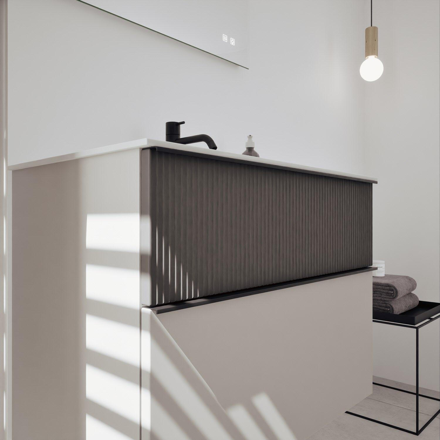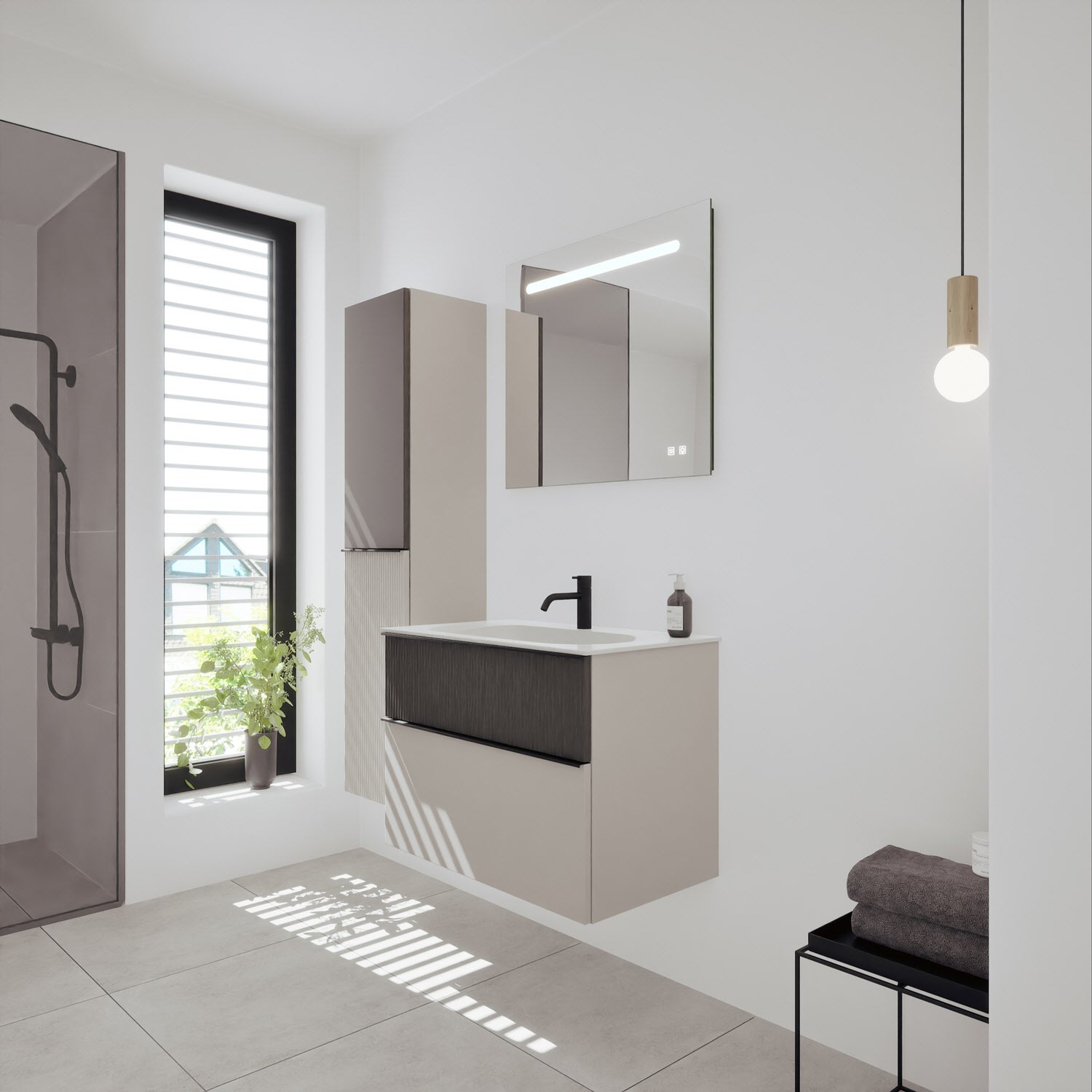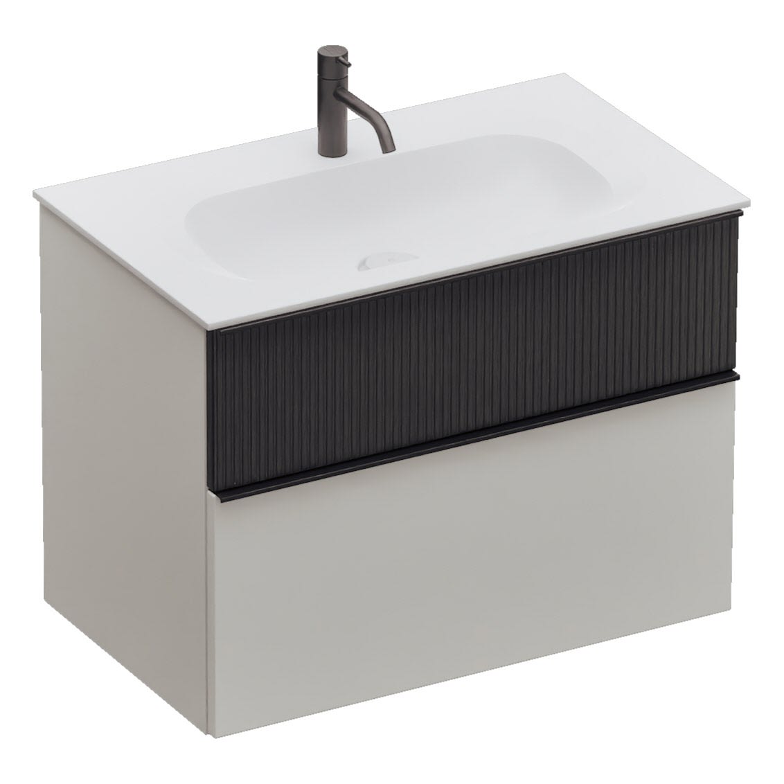 burgbad Fiumo 2.0 Mineralguss-Waschtisch mit Waschtischunterschrank 82 cm, mit Griff G0200