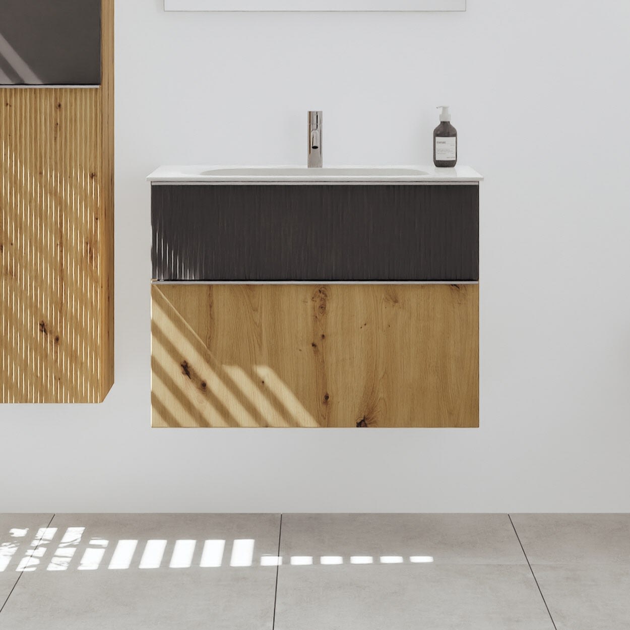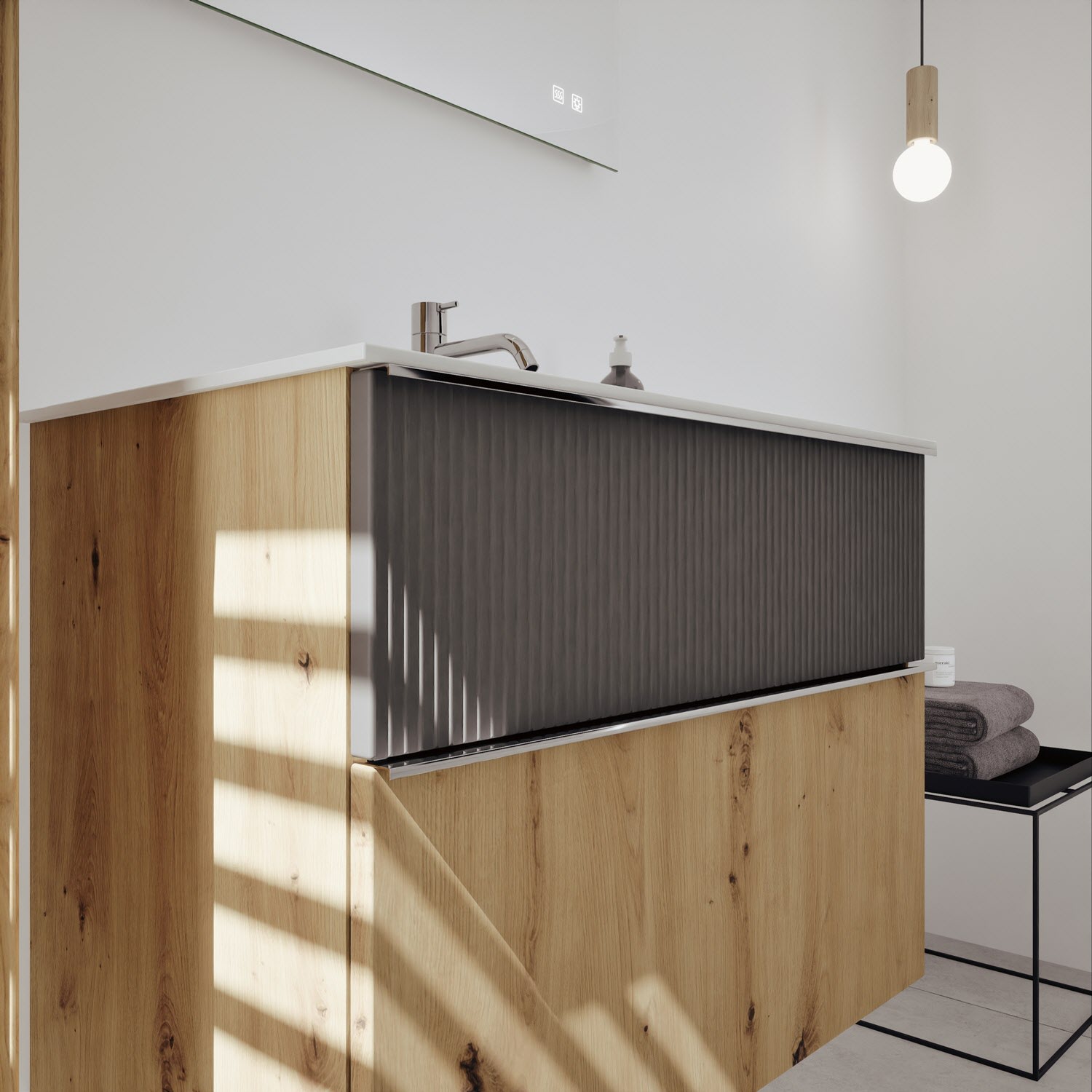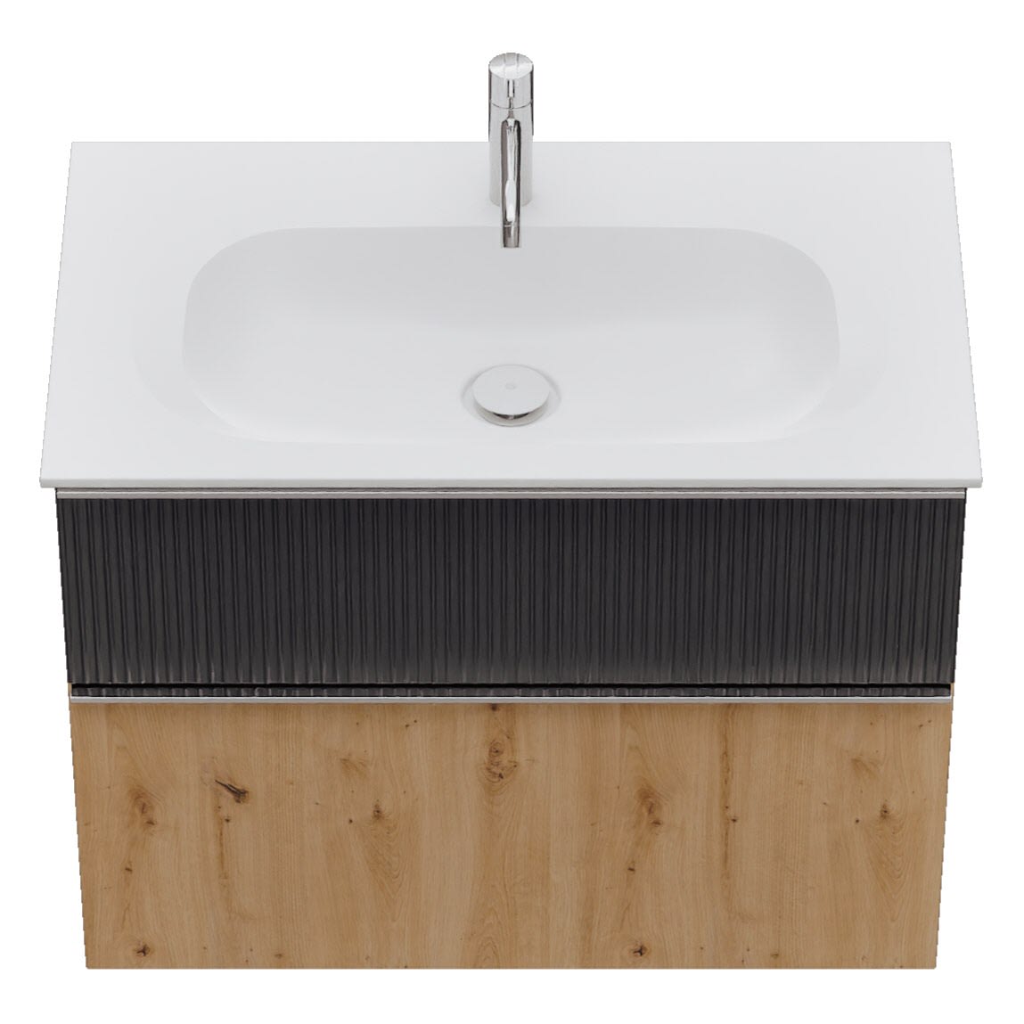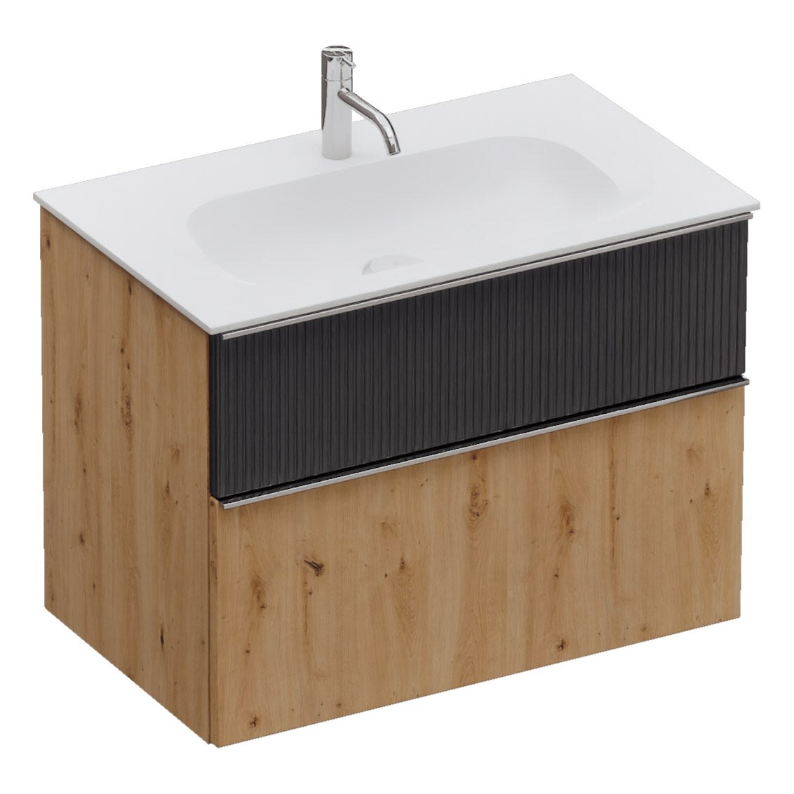 burgbad Fiumo 2.0 Mineralguss-Waschtisch mit Waschtischunterschrank 82 cm, mit Griff G0146