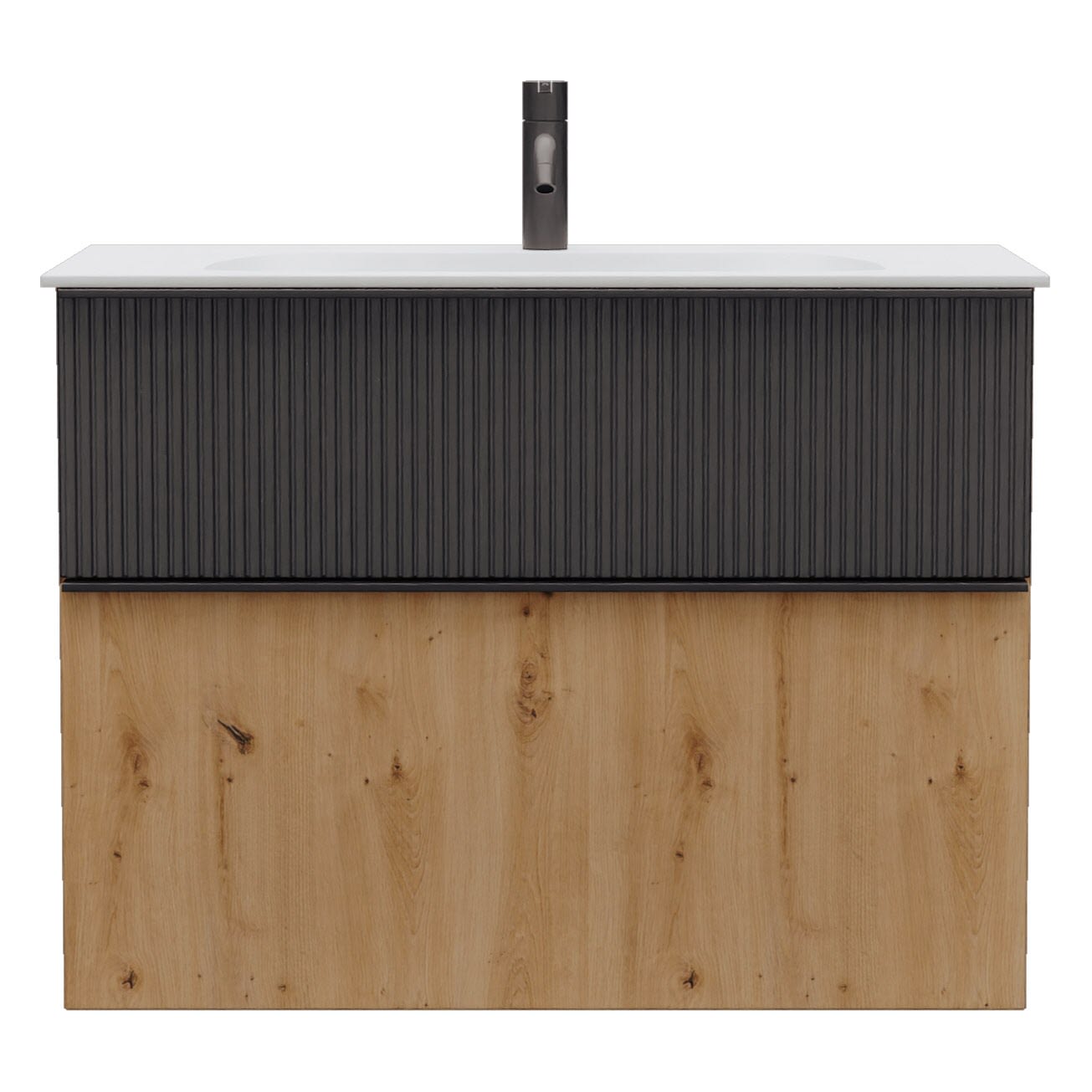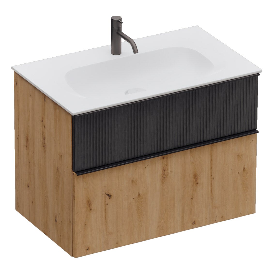 burgbad Fiumo 2.0 Mineralguss-Waschtisch mit Waschtischunterschrank 82 cm, mit Griff G0200