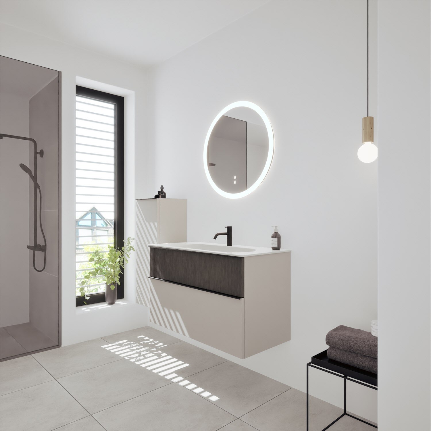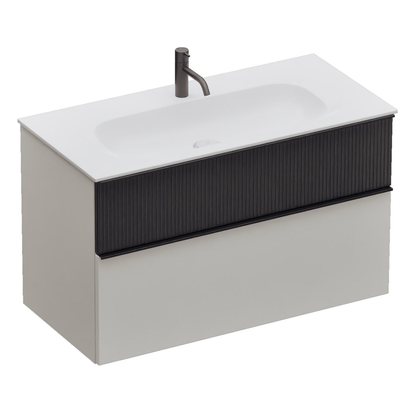 burgbad Fiumo 2.0 Mineralguss-Waschtisch mit Waschtischunterschrank 102 cm, mit Griff G0200