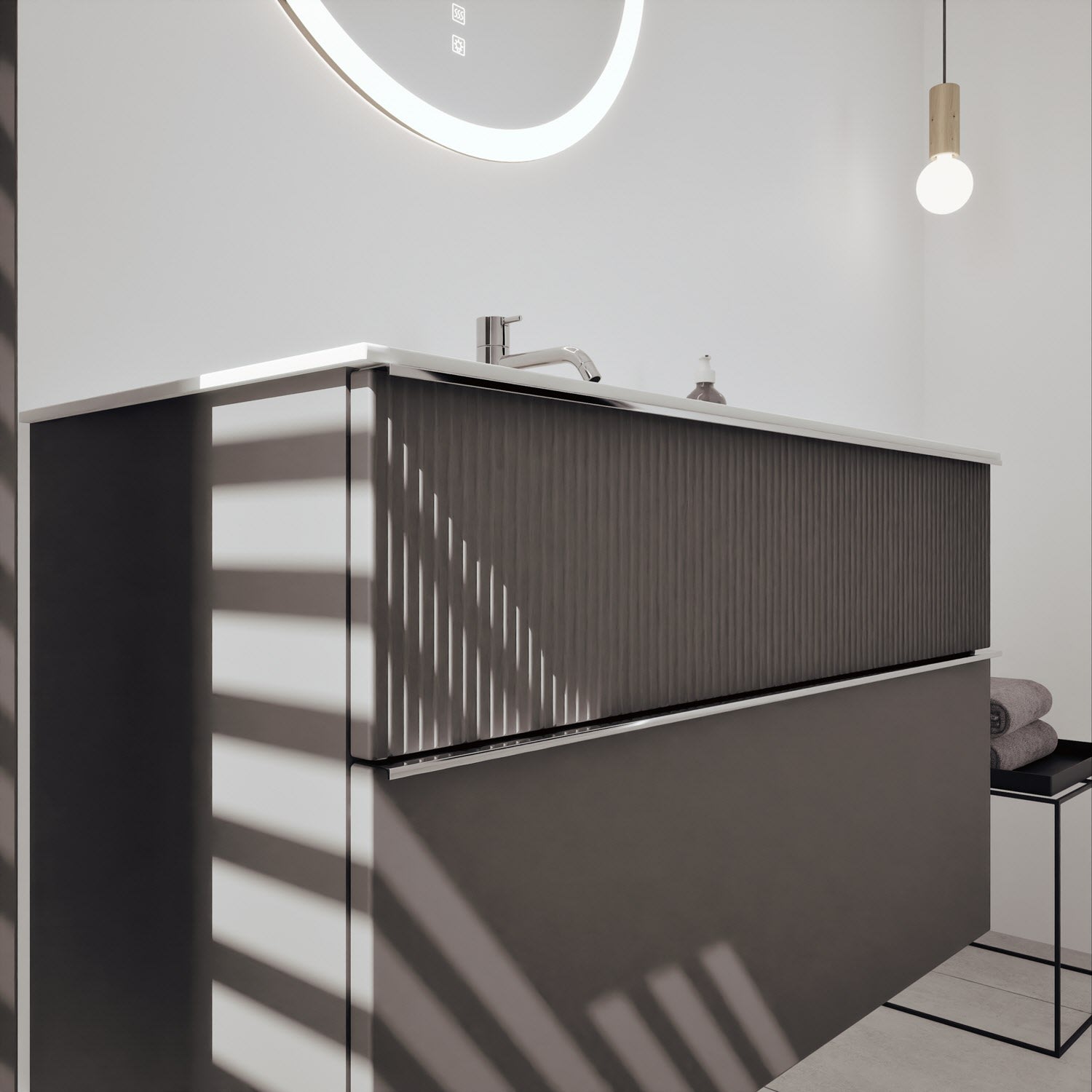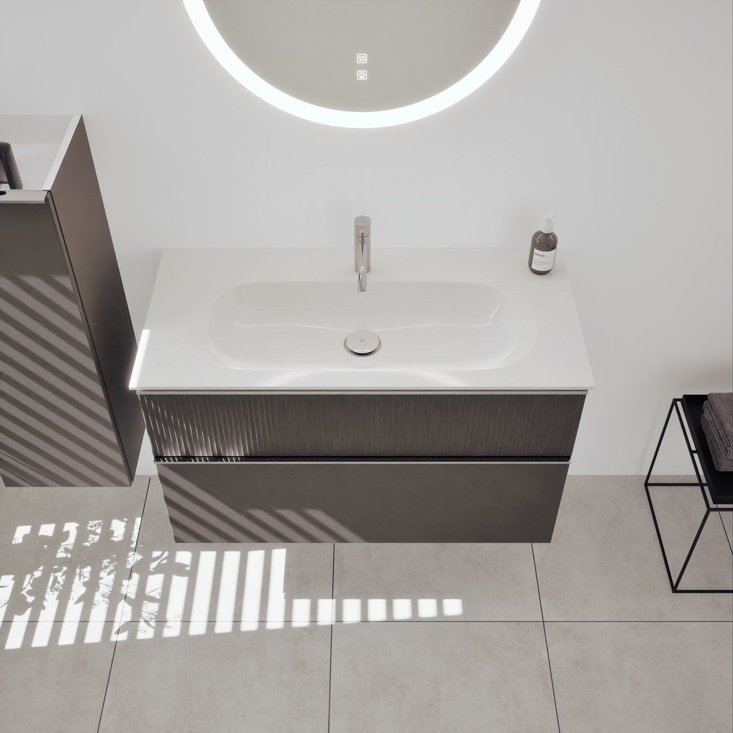 burgbad Fiumo 2.0 Mineralguss-Waschtisch mit Waschtischunterschrank 102 cm, mit Griff G0146