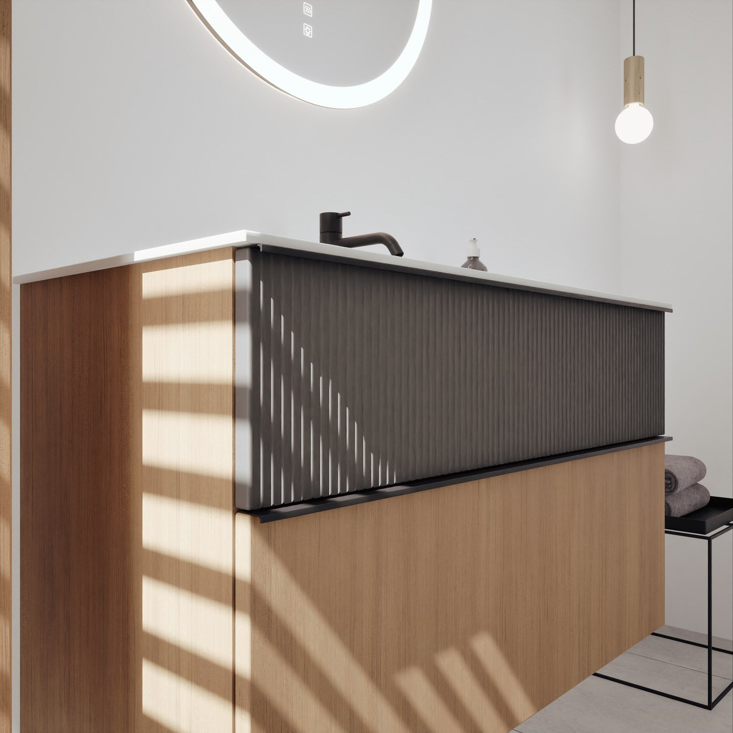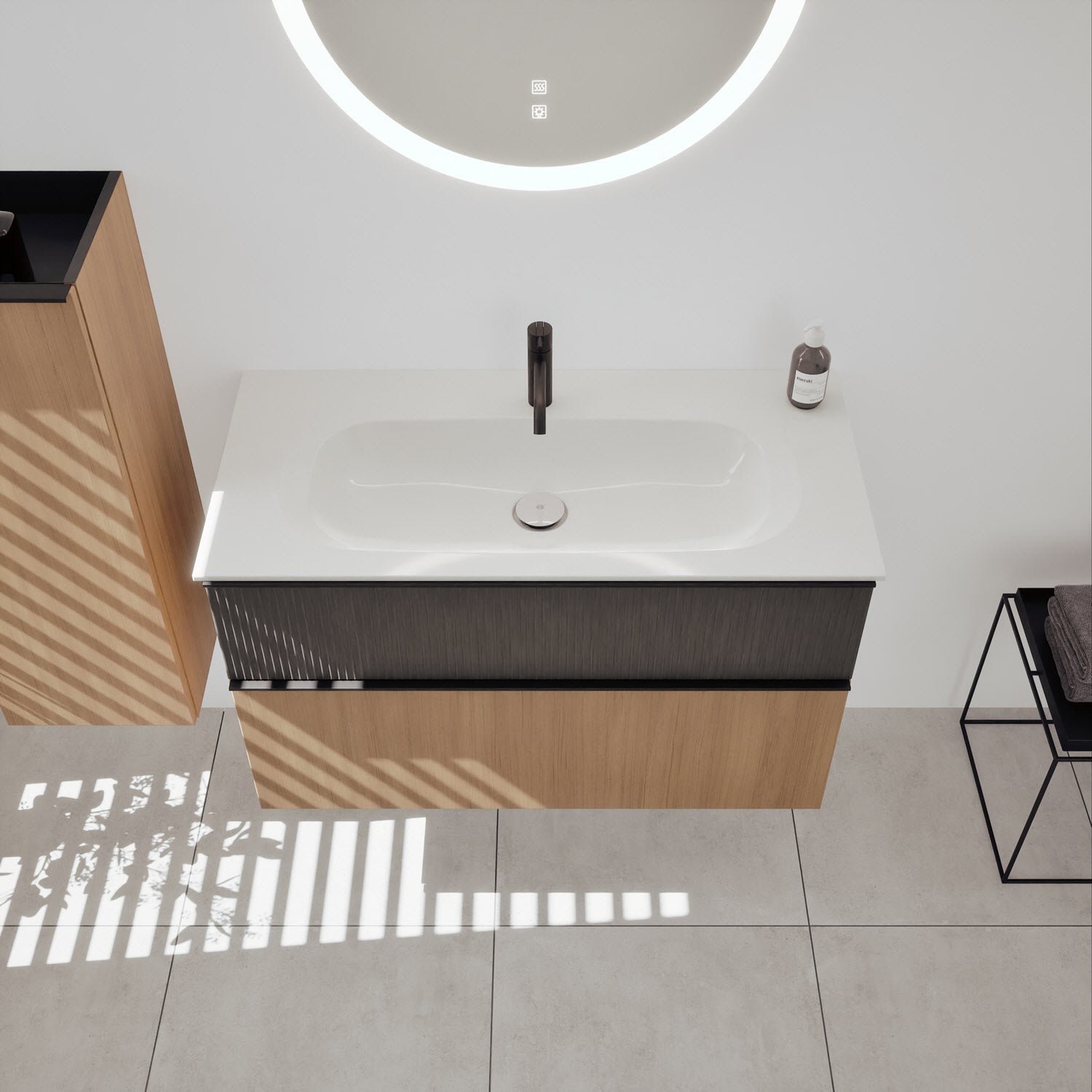 burgbad Fiumo 2.0 Mineralguss-Waschtisch mit Waschtischunterschrank 102 cm, mit Griff G0200
