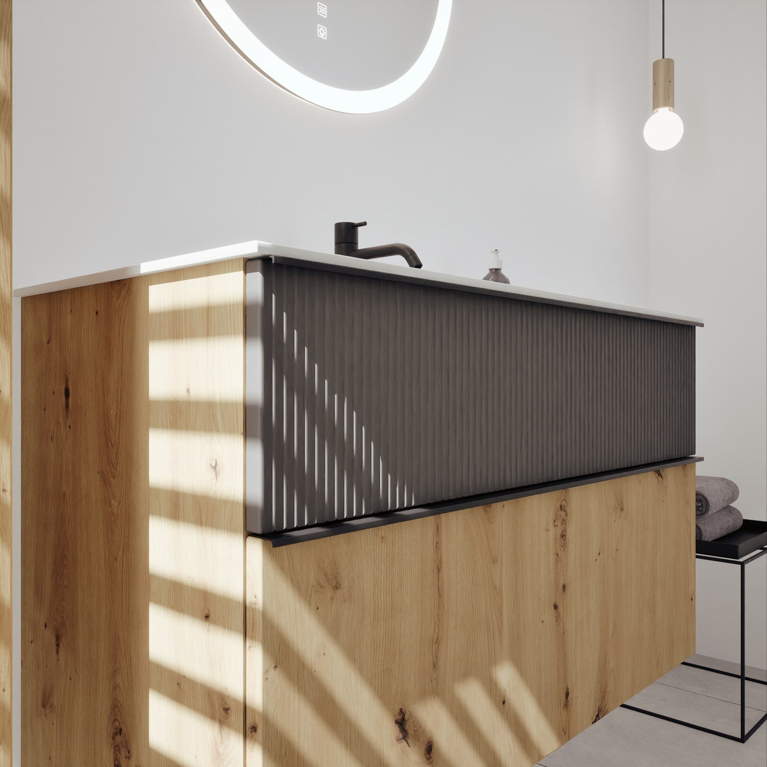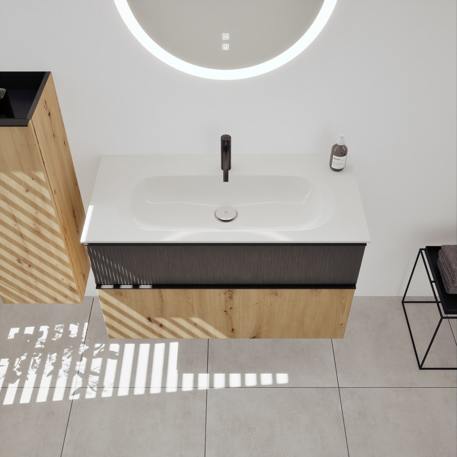 burgbad Fiumo 2.0 Mineralguss-Waschtisch mit Waschtischunterschrank 102 cm, mit Griff G0200