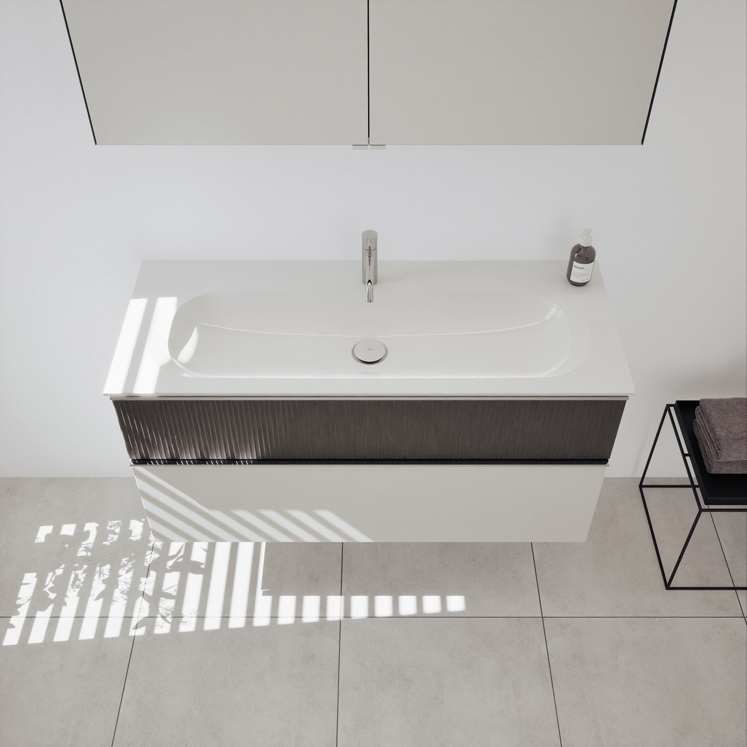 burgbad Fiumo 2.0 Mineralguss-Waschtisch mit Waschtischunterschrank 122 cm, mit Griff G0146