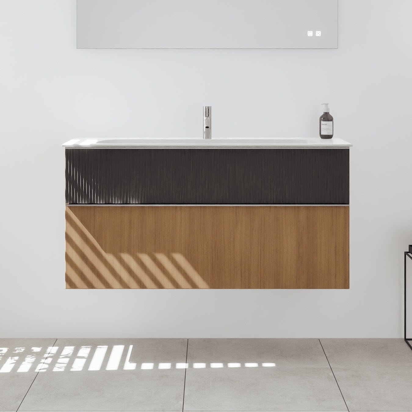 burgbad Fiumo 2.0 Spiegelschrank 120,6 cm mit LED-Aufsatzleuchte und Waschplatzbeleuchtung, 2 Spiegeltüren
