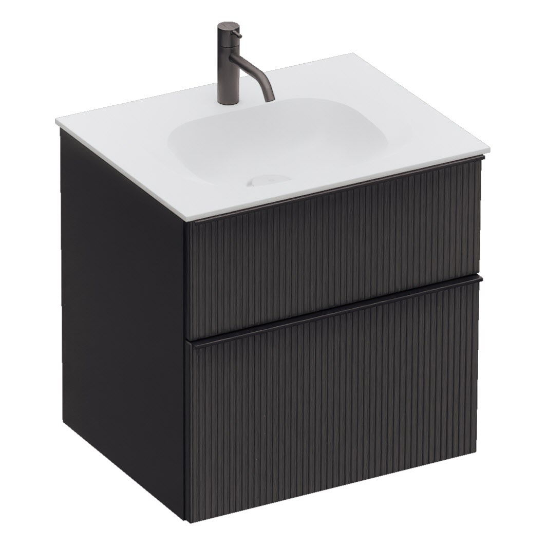 burgbad Fiumo 2.0 Mineralguss-Waschtisch mit Waschtischunterschrank 62 cm, mit Griff G0200