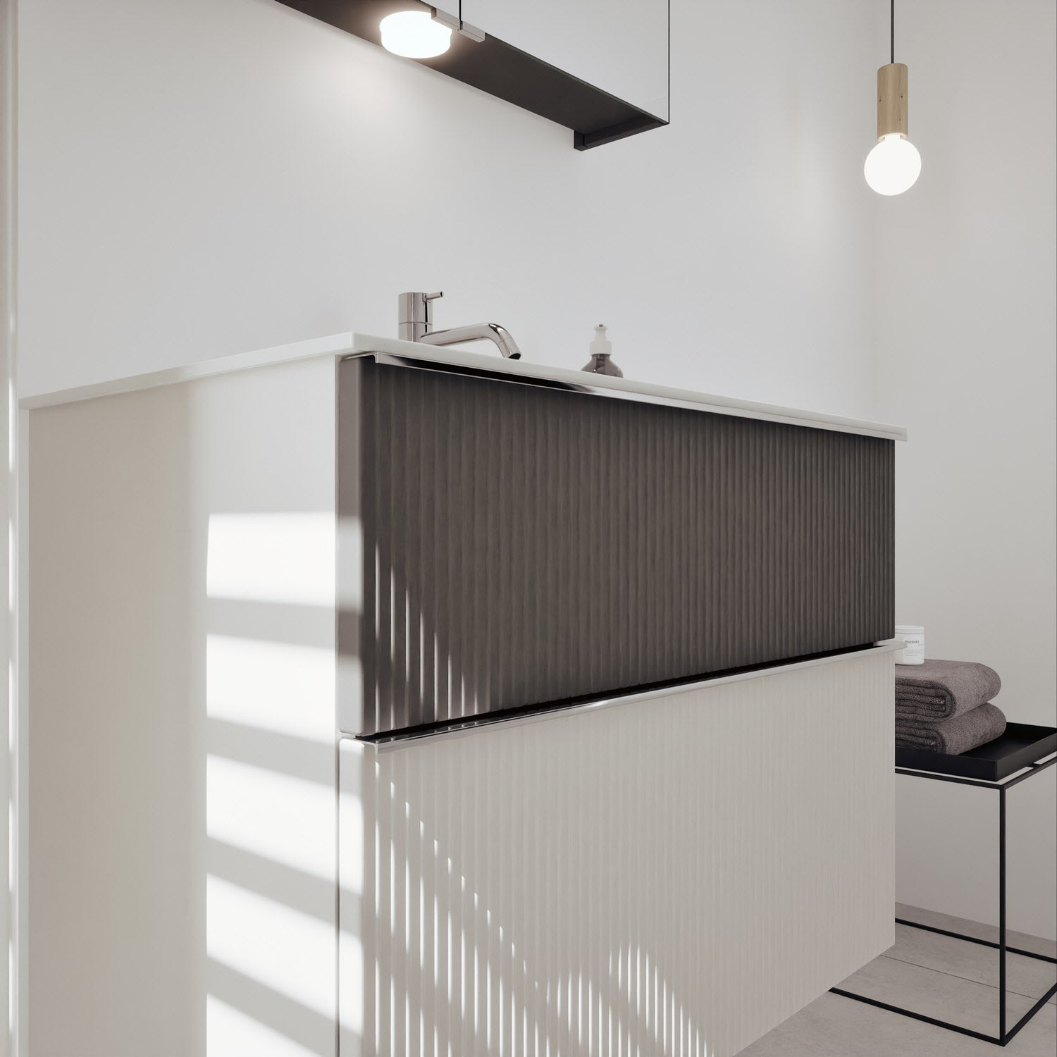 - 1 Auszug unten: 35 cm tief, mit vertikaler Struktur
