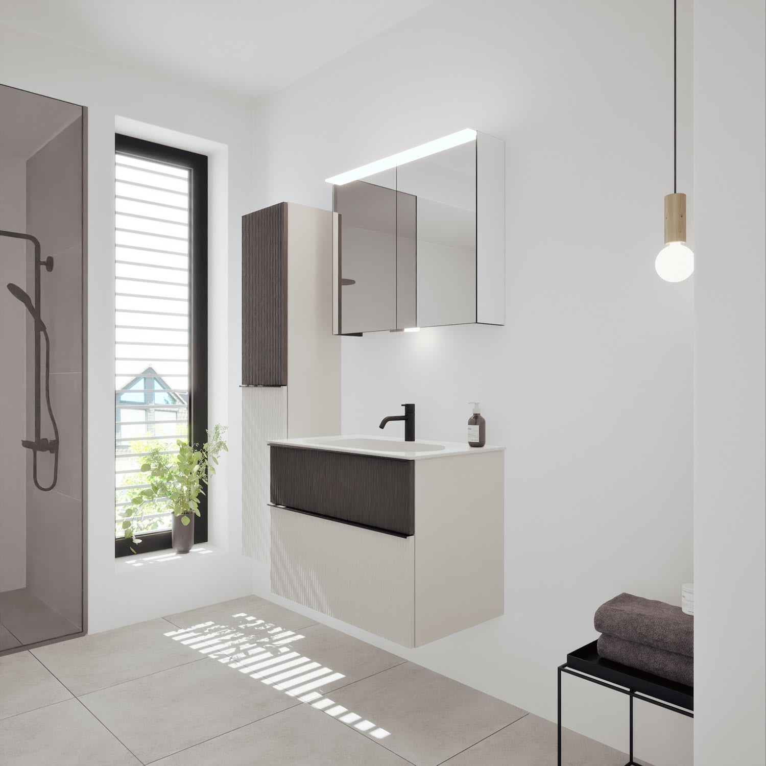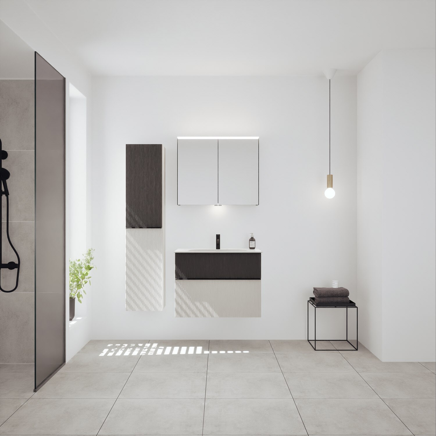 burgbad Fiumo 2.0 Mineralguss-Waschtisch mit Waschtischunterschrank 82 cm, mit Griff G0200
