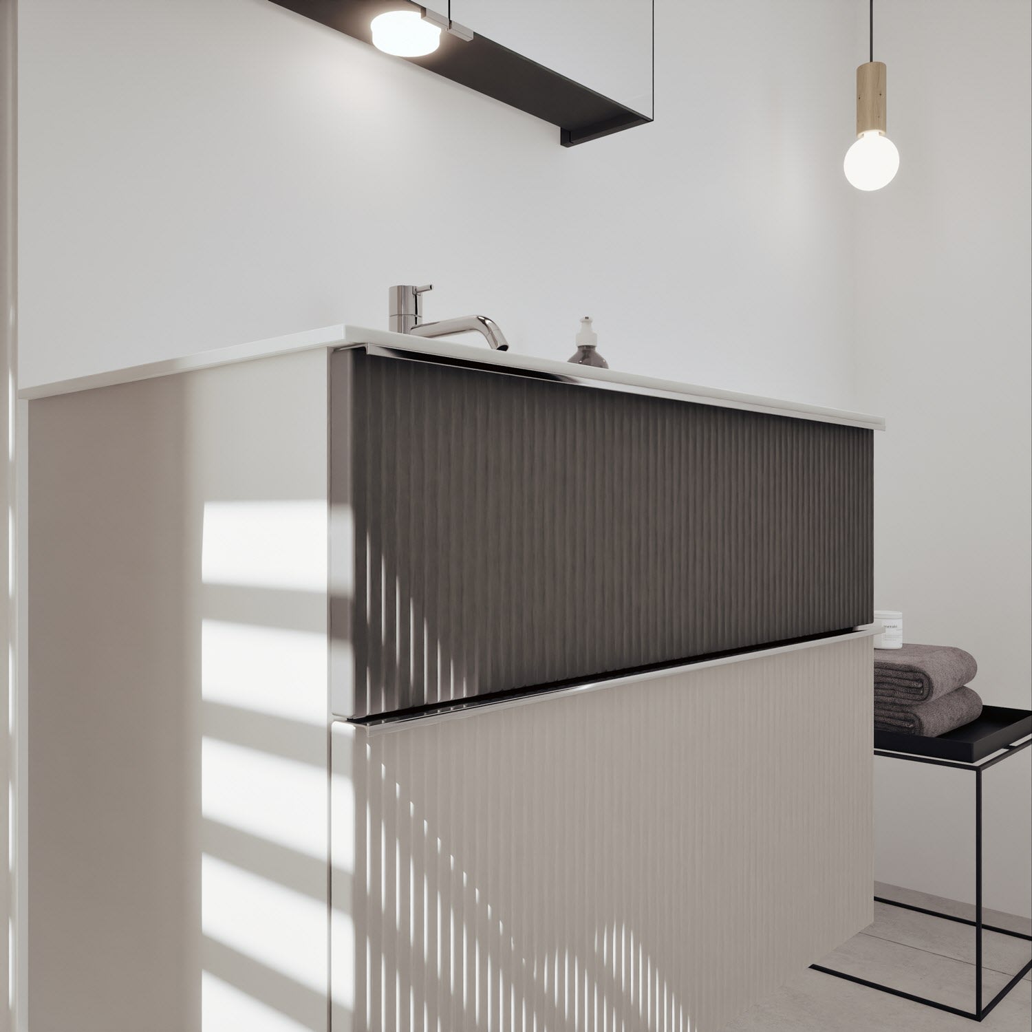 - 1 Auszug unten: 35 cm tief, mit vertikaler Struktur
