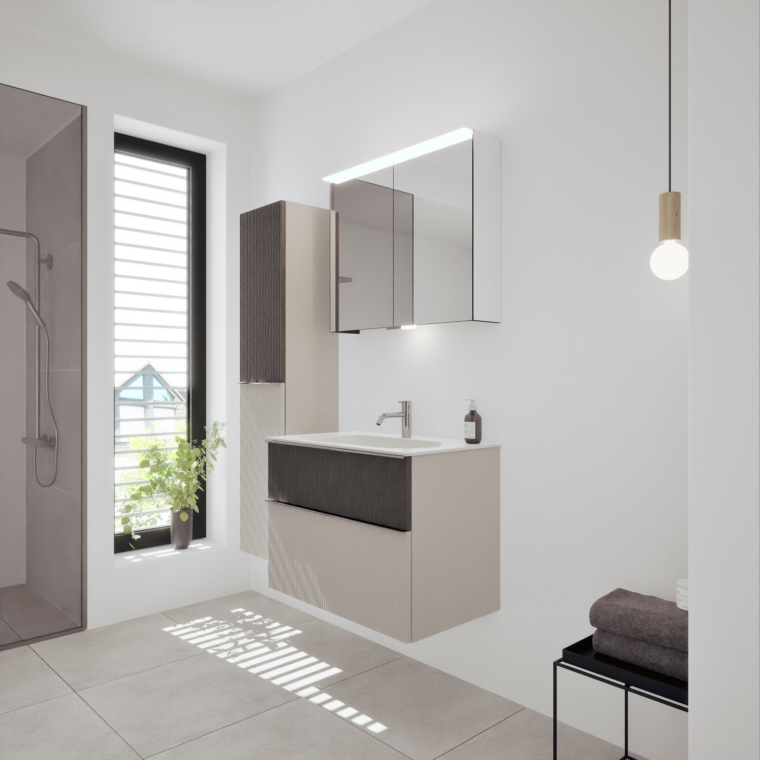 burgbad Fiumo 2.0 Mineralguss-Waschtisch mit Waschtischunterschrank 82 cm, mit Griff G0146
