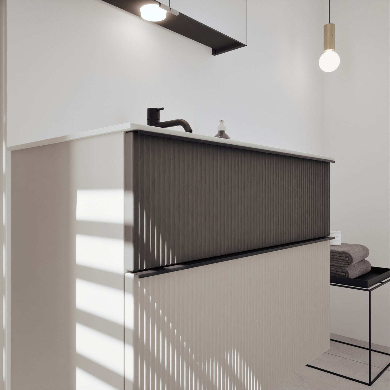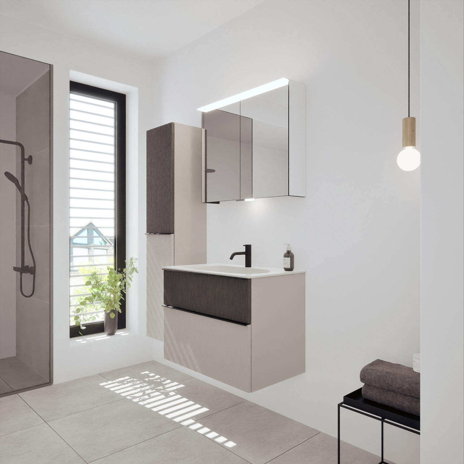 burgbad Fiumo 2.0 Mineralguss-Waschtisch mit Waschtischunterschrank 82 cm, mit Griff G0200