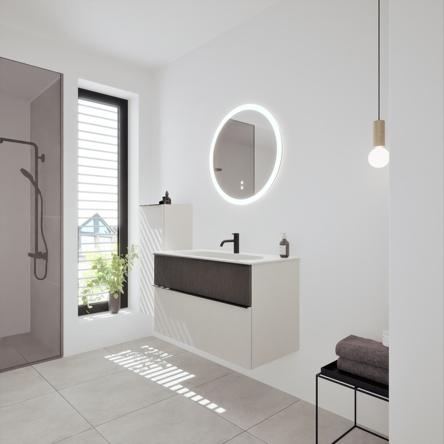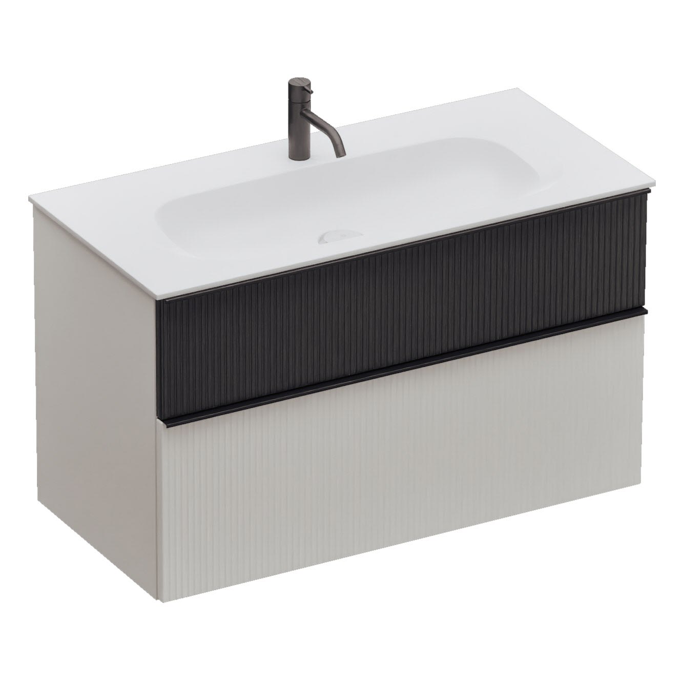 burgbad Fiumo 2.0 Mineralguss-Waschtisch mit Waschtischunterschrank 102 cm, mit Griff G0200