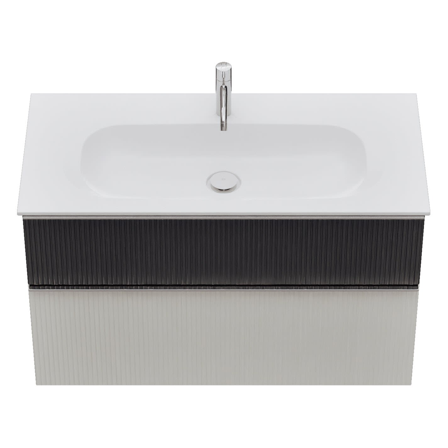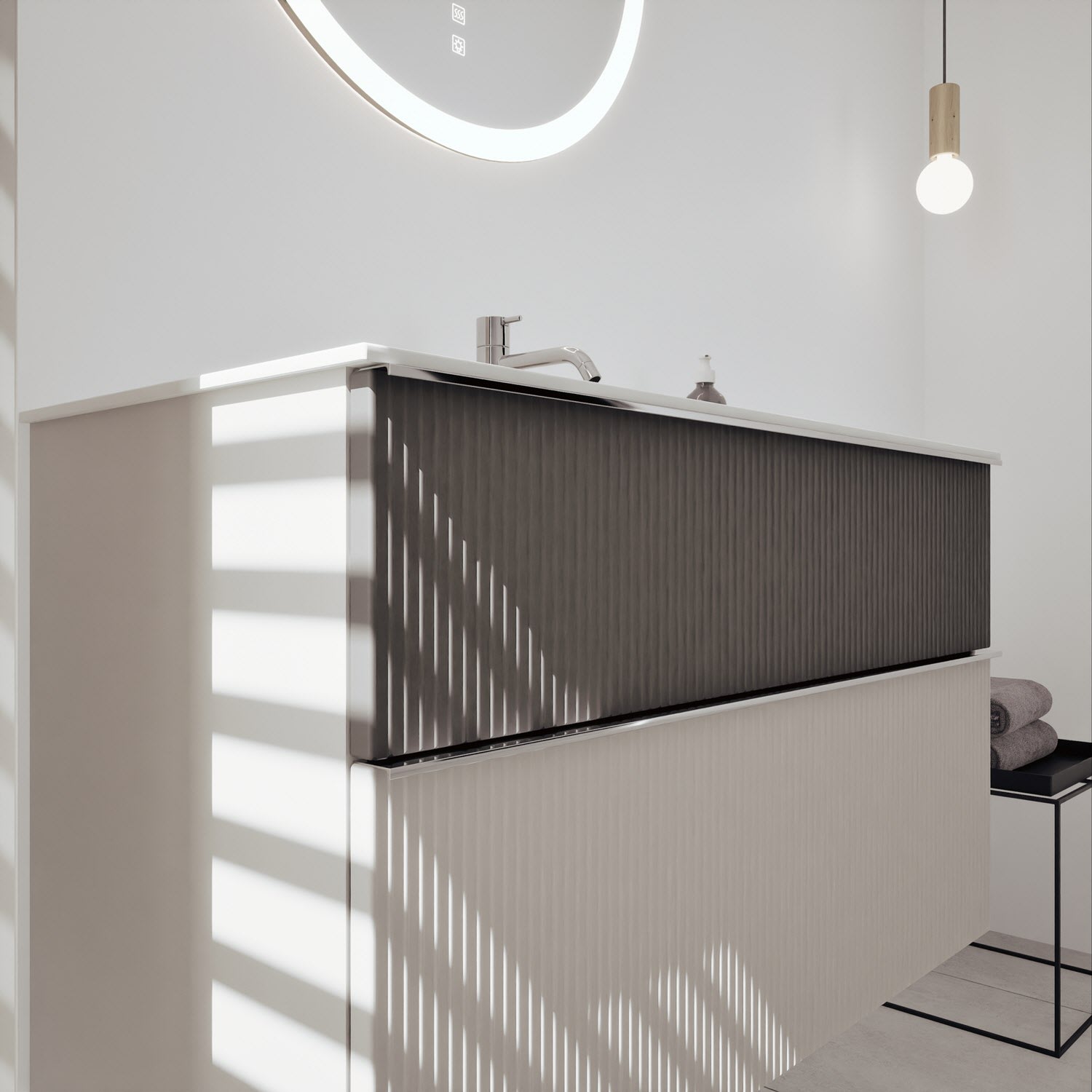 burgbad Fiumo 2.0 Mineralguss-Waschtisch mit Waschtischunterschrank 102 cm, mit Griff G0146