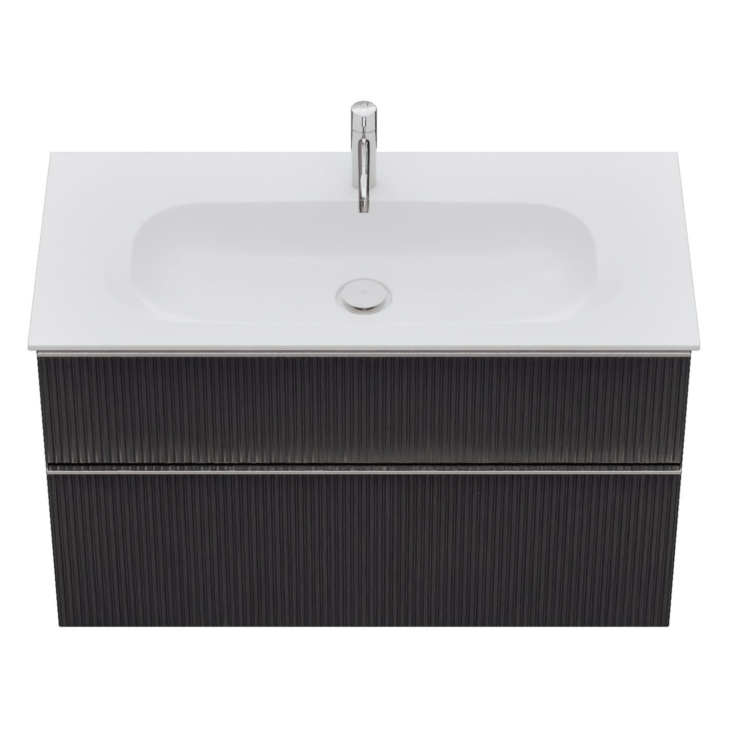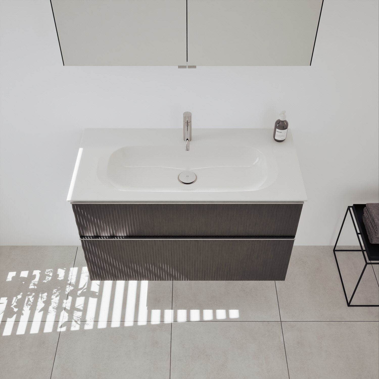 burgbad Fiumo 2.0 Mineralguss-Waschtisch mit Waschtischunterschrank 102 cm, mit Griff G0146