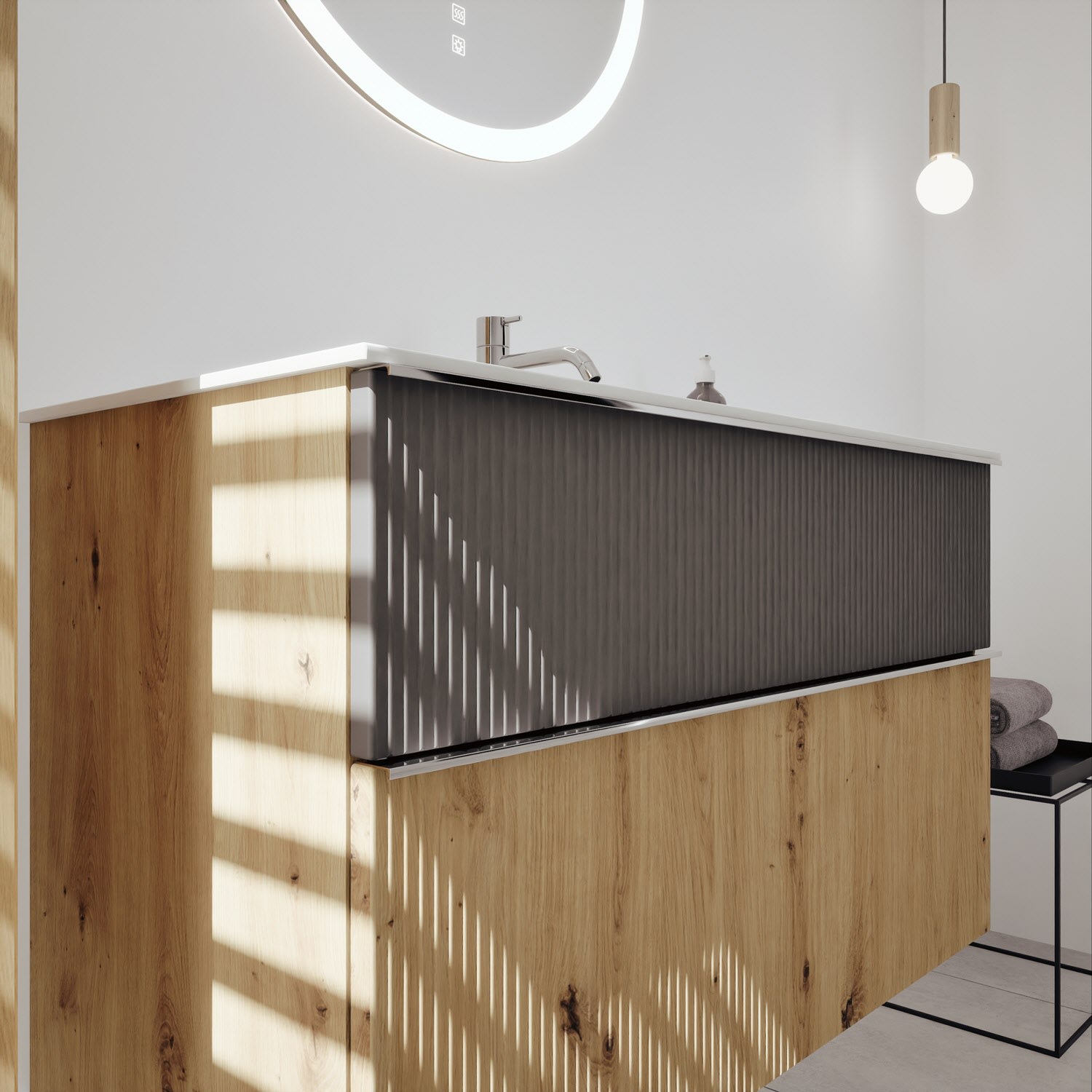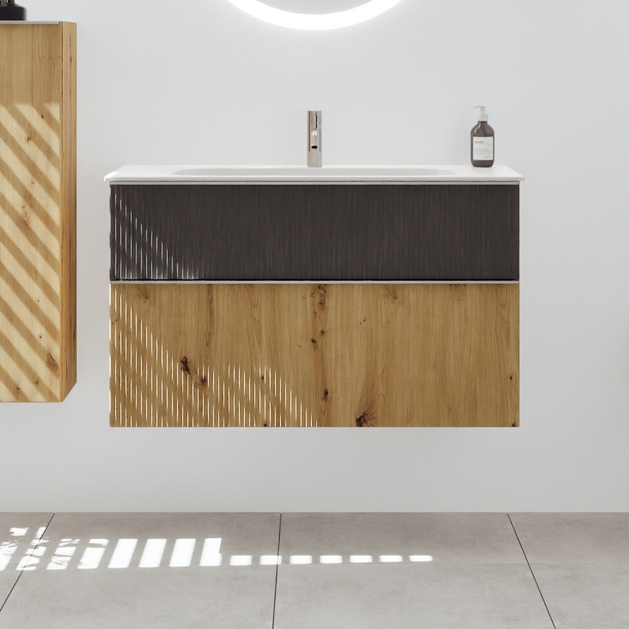 burgbad Fiumo 2.0 Mineralguss-Waschtisch mit Waschtischunterschrank 102 cm, mit Griff G0146