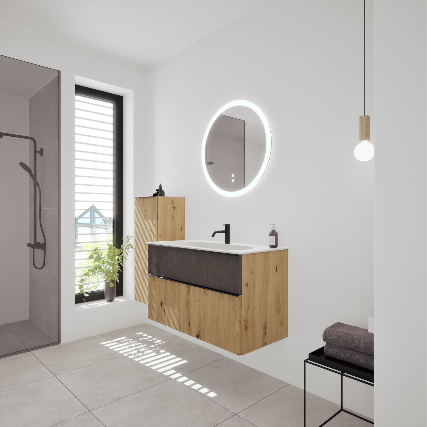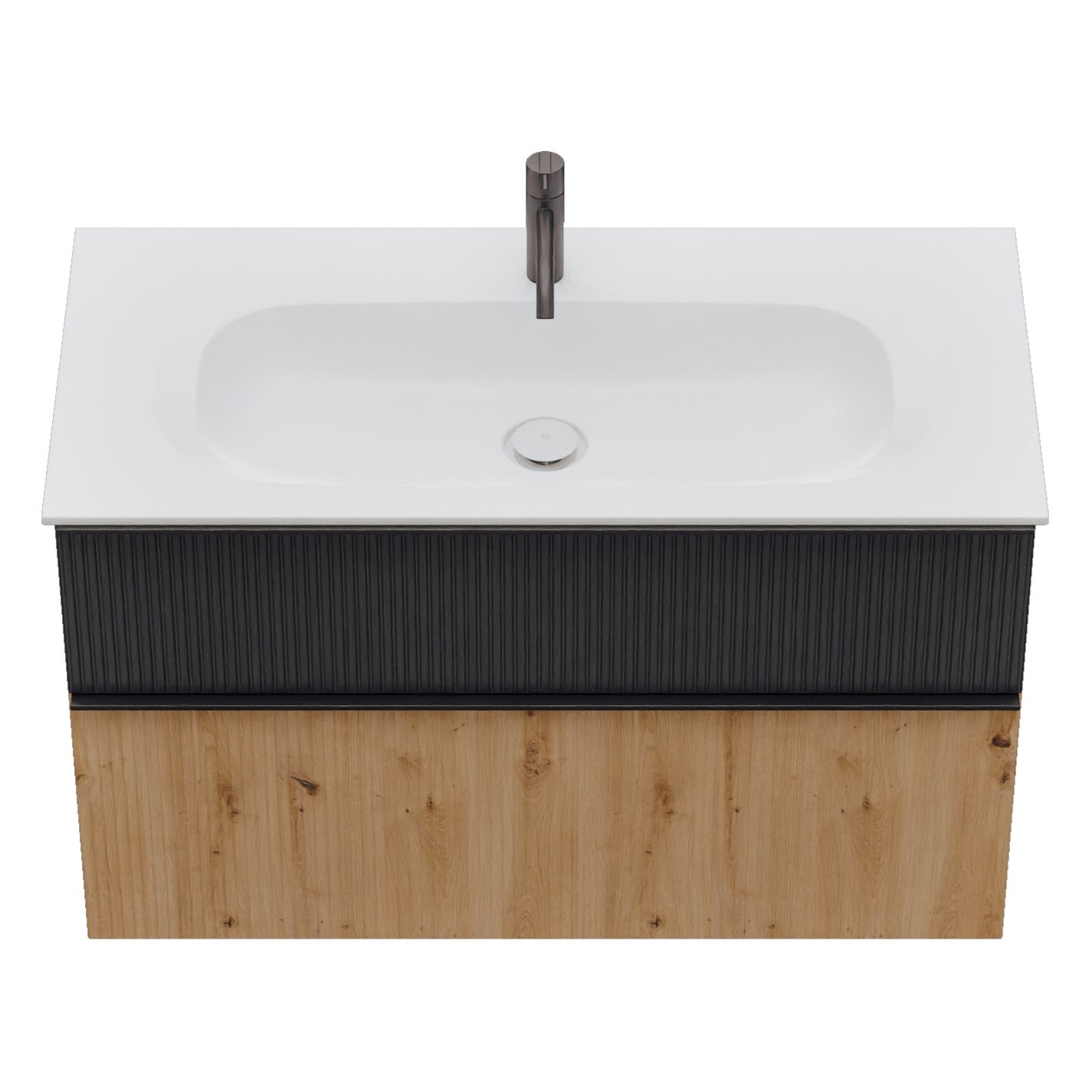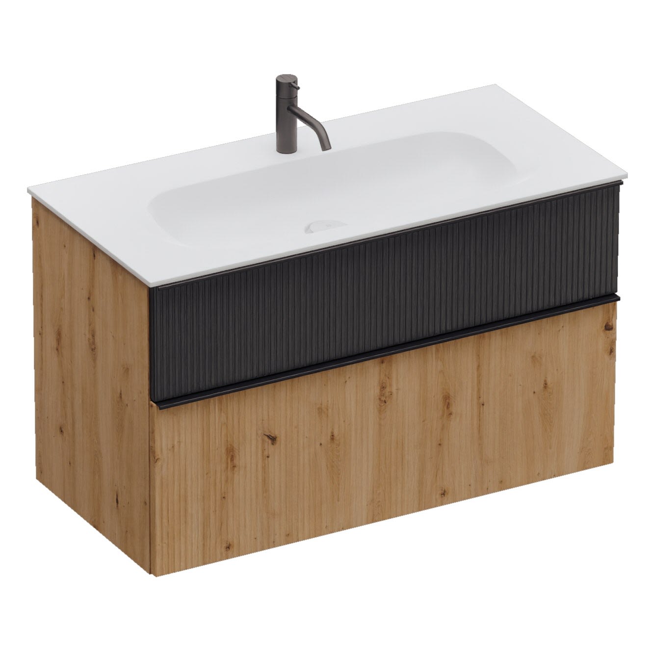 burgbad Fiumo 2.0 Mineralguss-Waschtisch mit Waschtischunterschrank 102 cm, mit Griff G0200