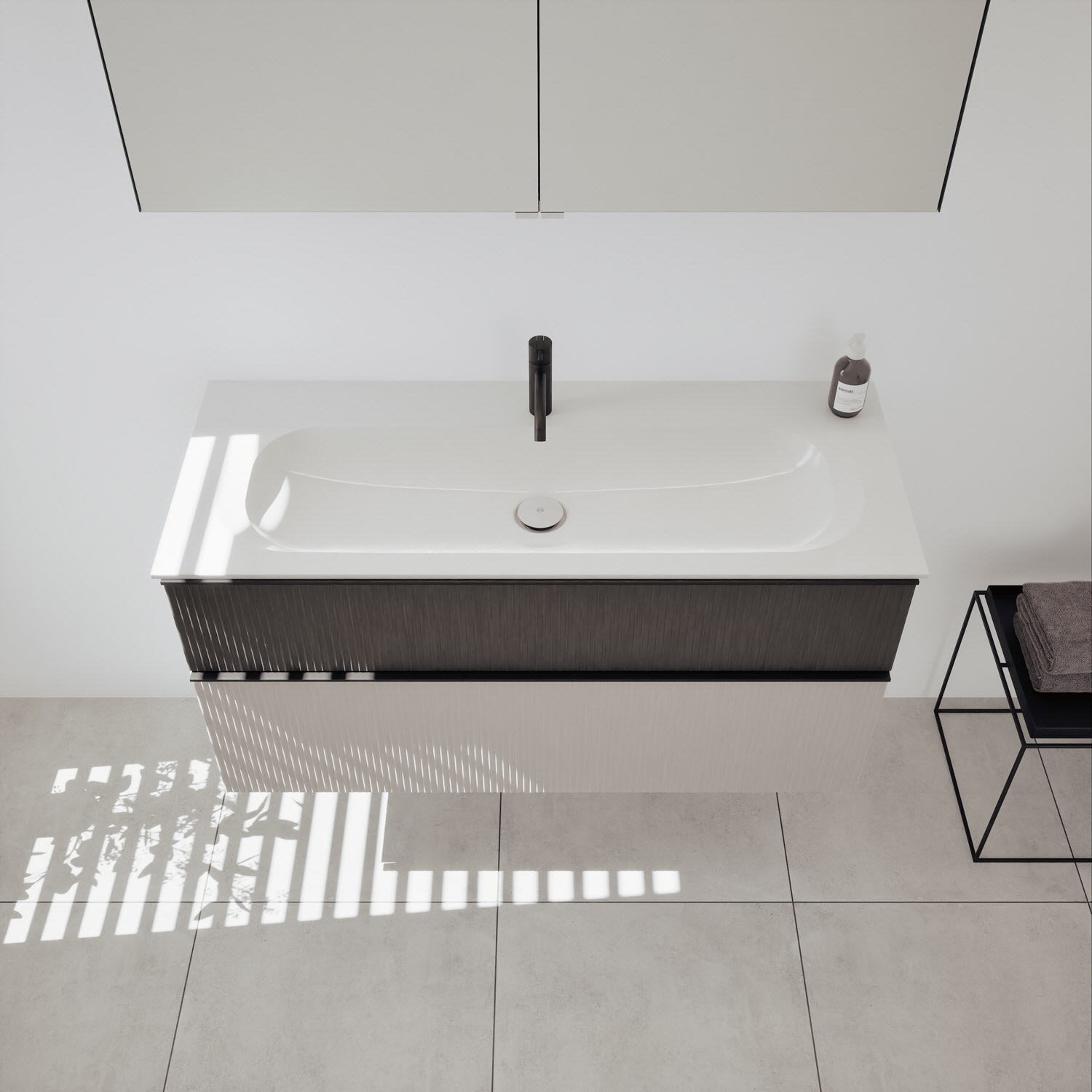 burgbad Fiumo 2.0 Mineralguss-Waschtisch mit Waschtischunterschrank 122 cm, mit Griff G0200