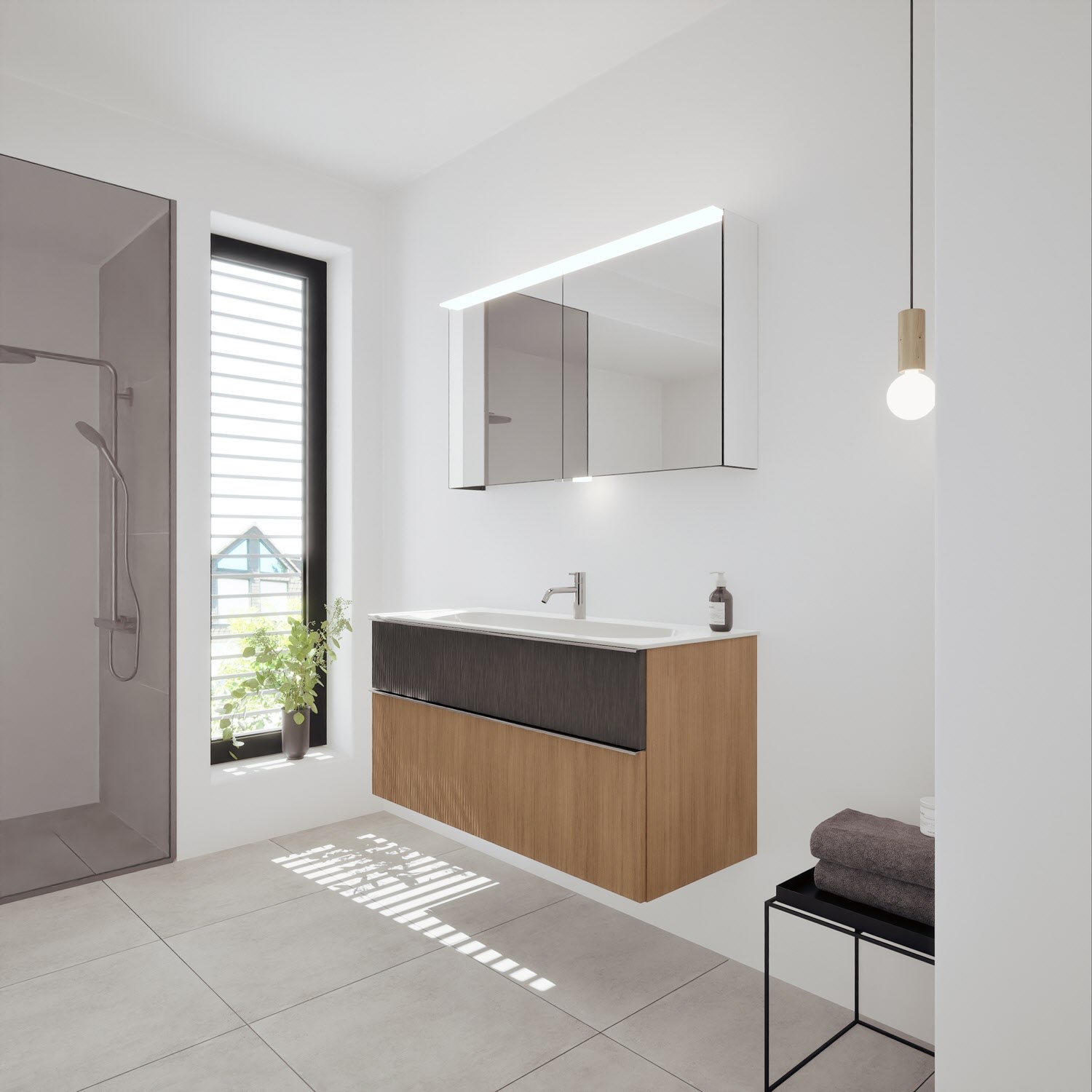 burgbad Fiumo 2.0 Spiegelschrank 120,6 cm mit LED-Aufsatzleuchte und Waschplatzbeleuchtung, 2 Spiegeltüren