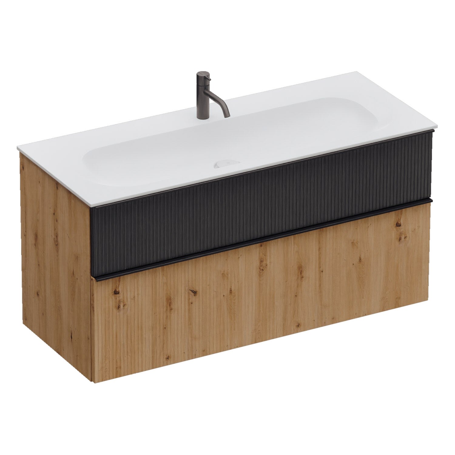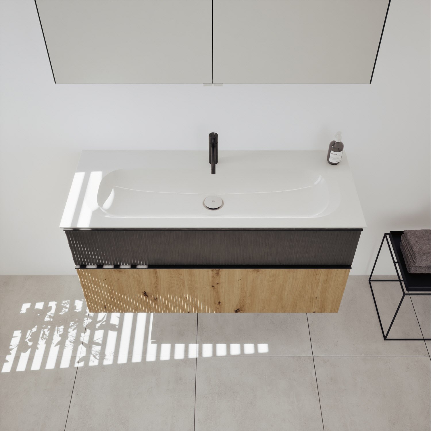 burgbad Fiumo 2.0 Mineralguss-Waschtisch mit Waschtischunterschrank 122 cm, mit Griff G0200