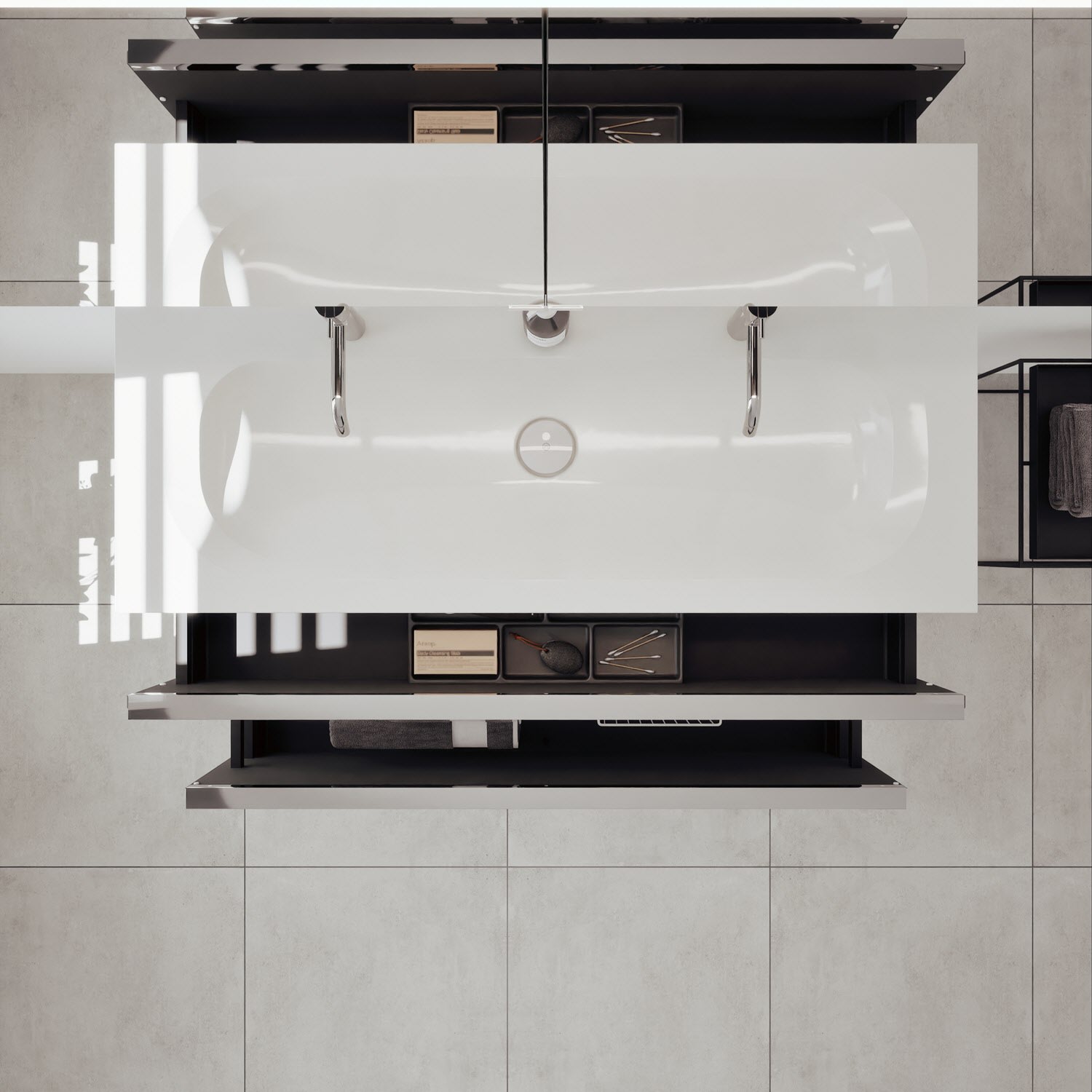 burgbad Fiumo 2.0 Spiegelschrank 120,6 cm mit LED-Aufsatzleuchte und Waschplatzbeleuchtung, 2 Spiegeltüren