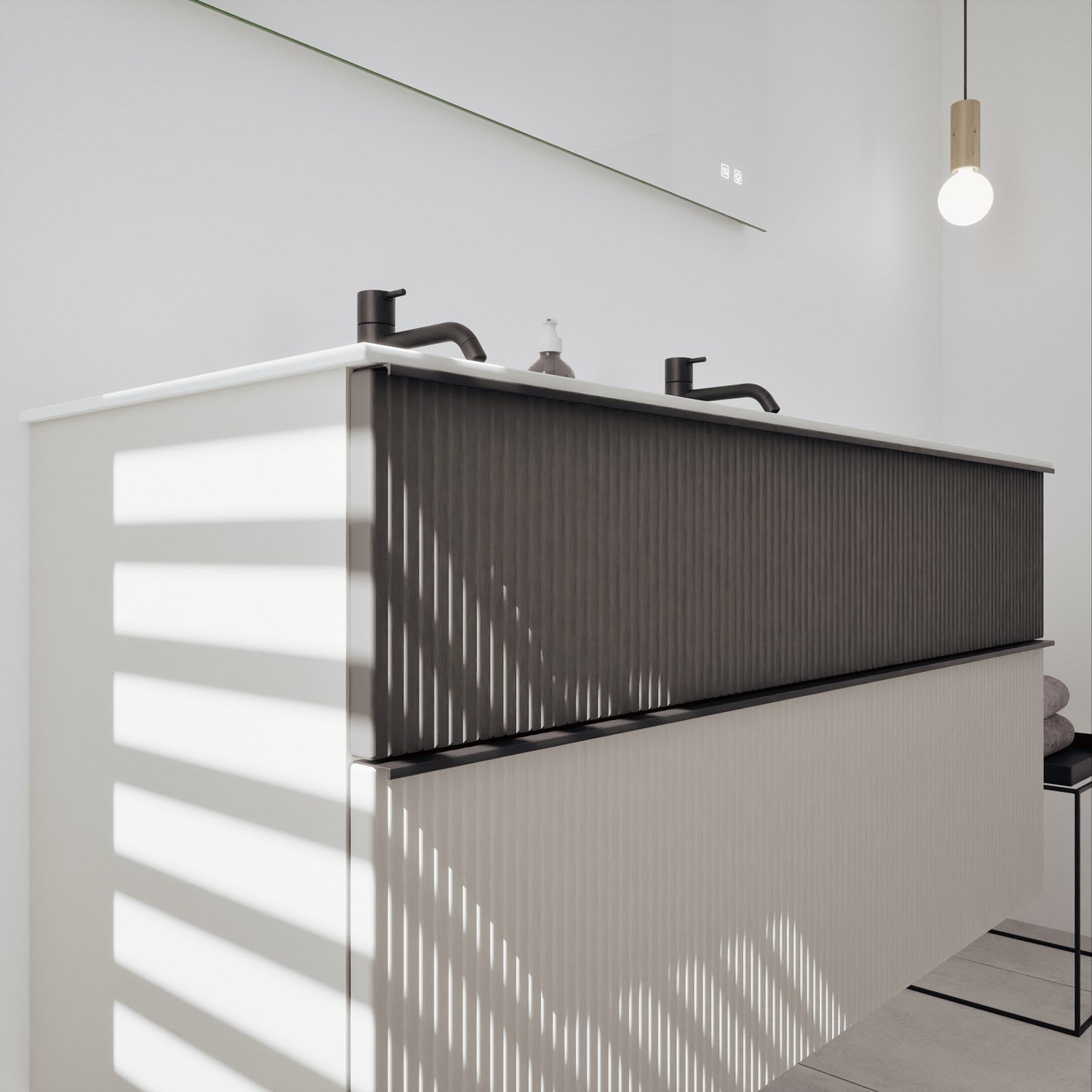 burgbad Fiumo 2.0 Mineralguss-Waschtisch mit Waschtischunterschrank 122 cm, mit Griff G0200