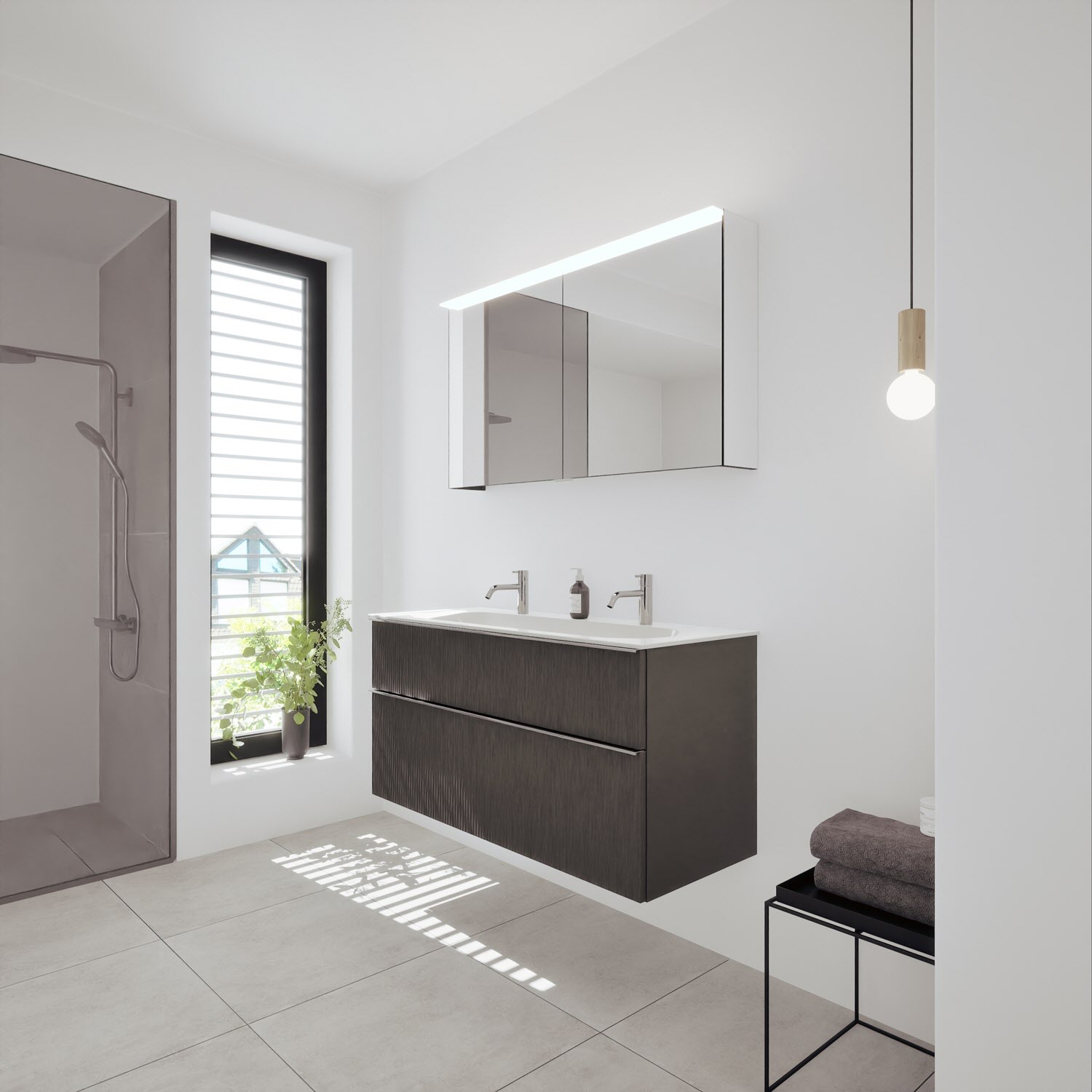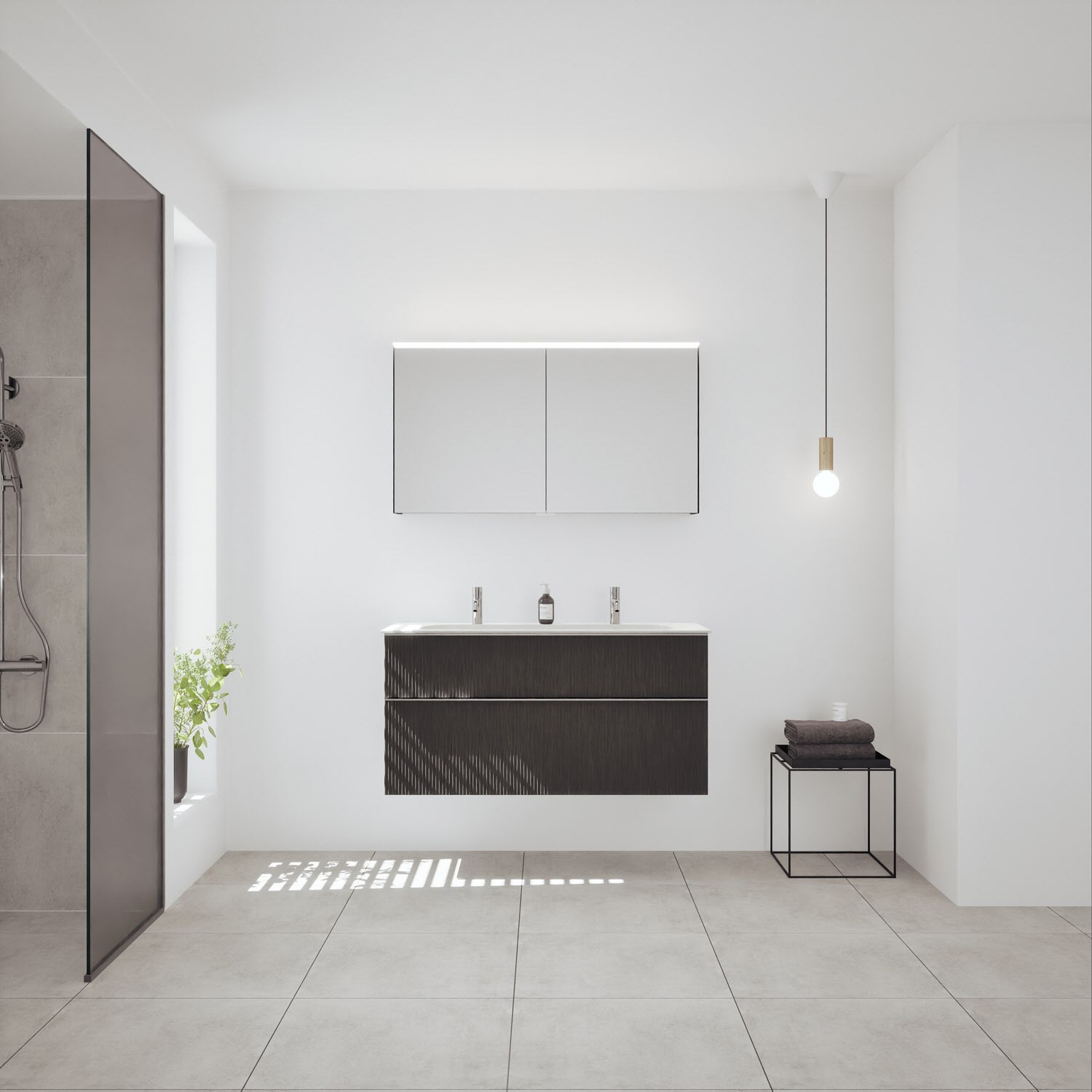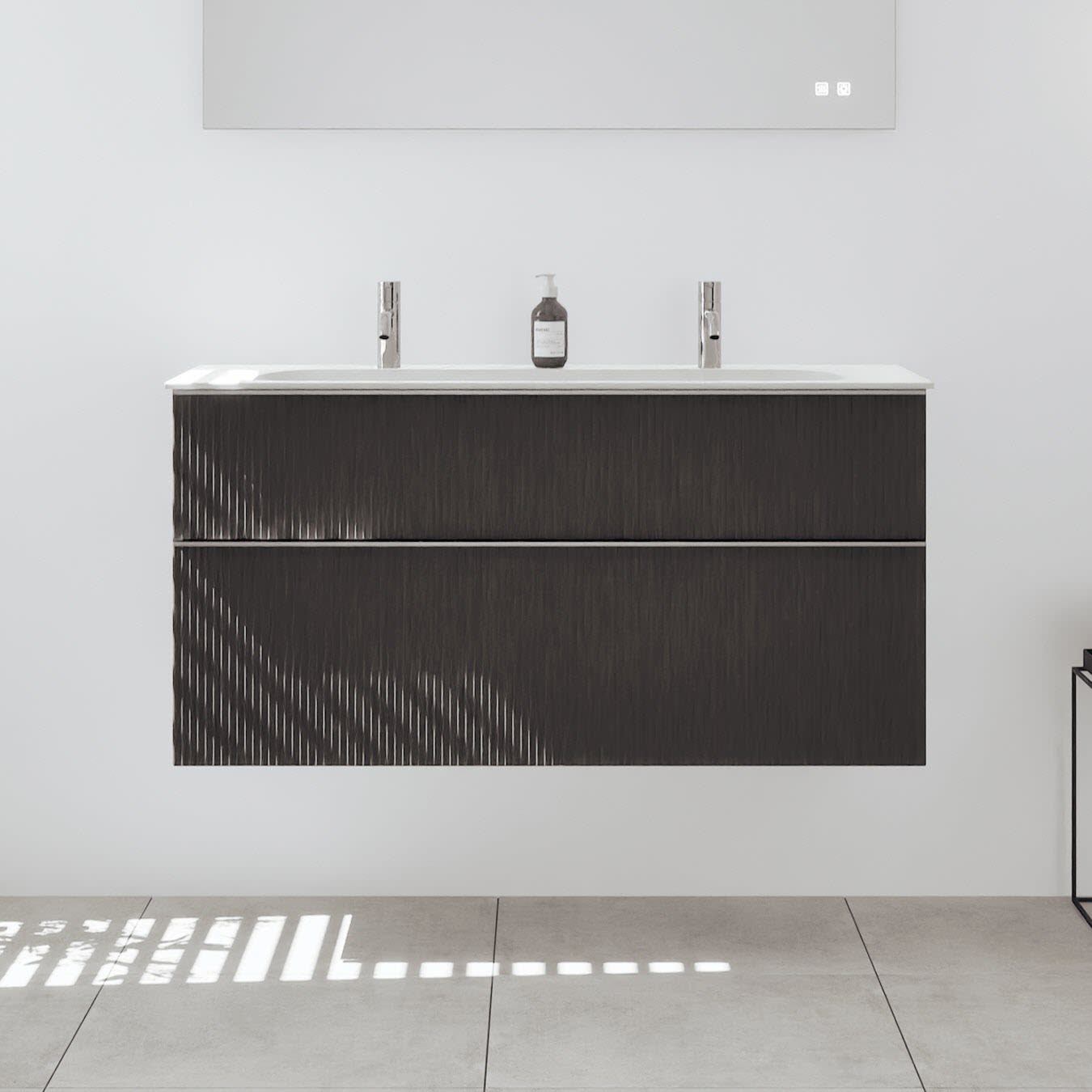 burgbad Fiumo 2.0 Spiegelschrank 120,6 cm mit LED-Aufsatzleuchte und Waschplatzbeleuchtung, 2 Spiegeltüren