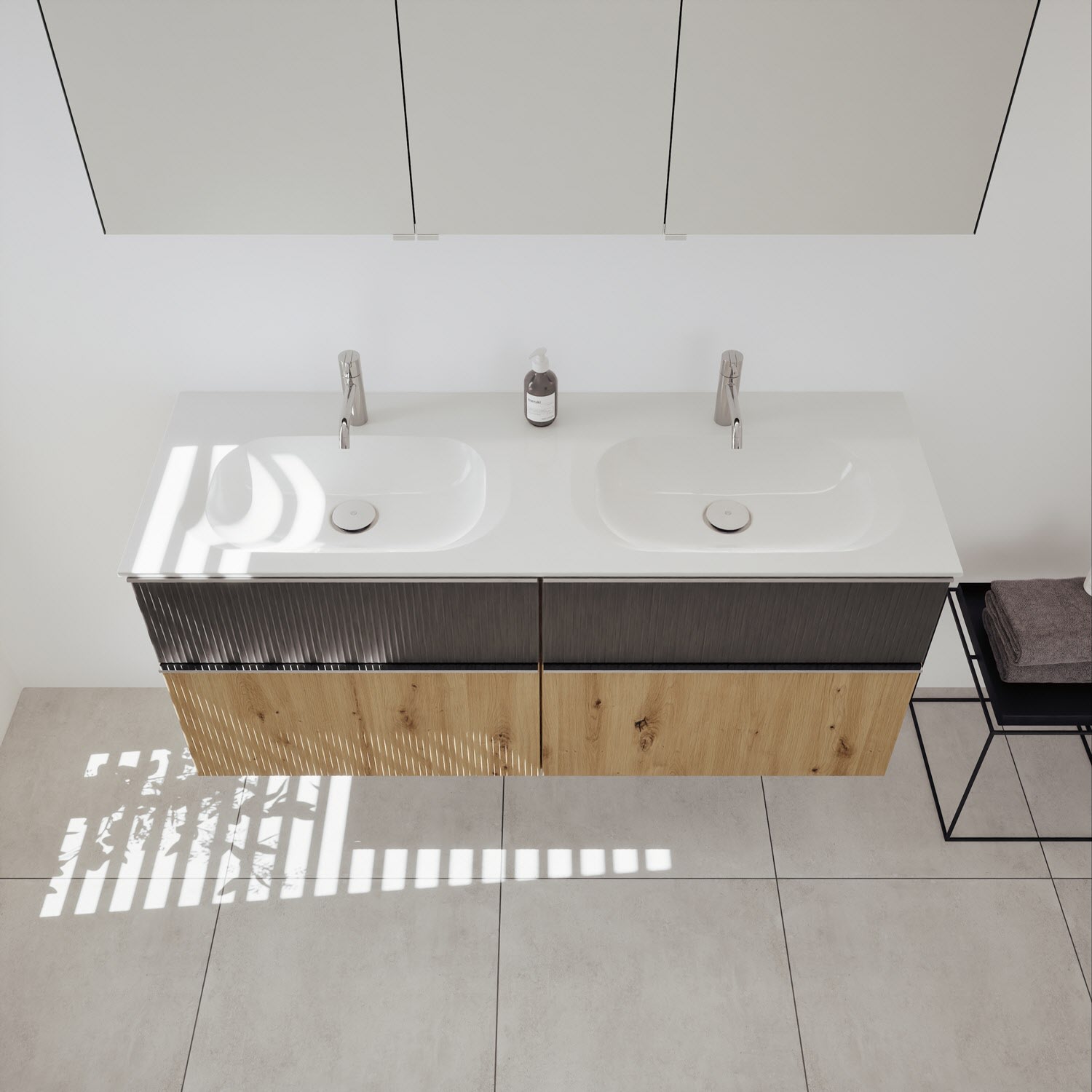 burgbad Fiumo 2.0 Mineralguss-Waschtisch mit Waschtischunterschrank 142 cm, mit Griff G0146