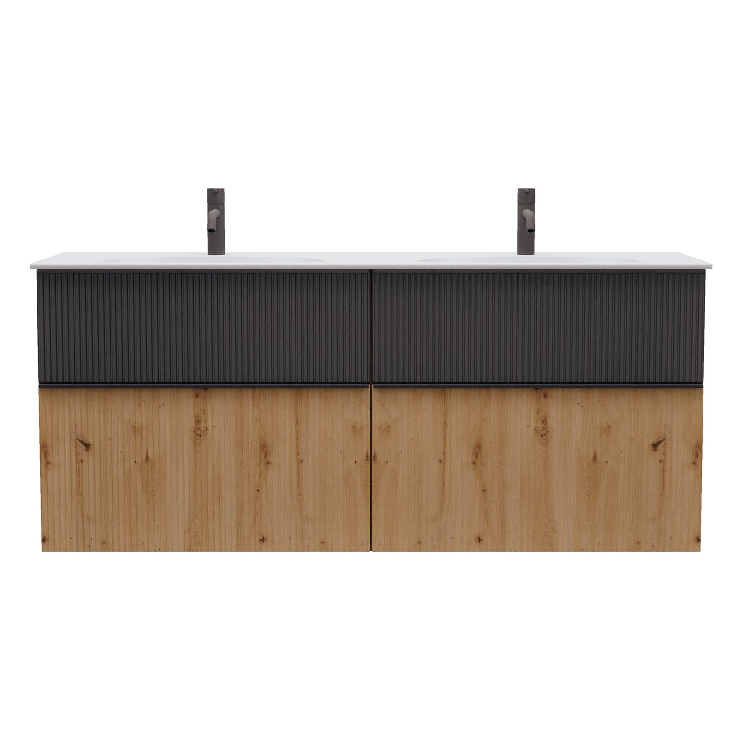 - 2 Schubladen oben, 35 cm tief, mit vertikaler Struktur inkl. mit Siphonausschnitt und Inneneinteilung