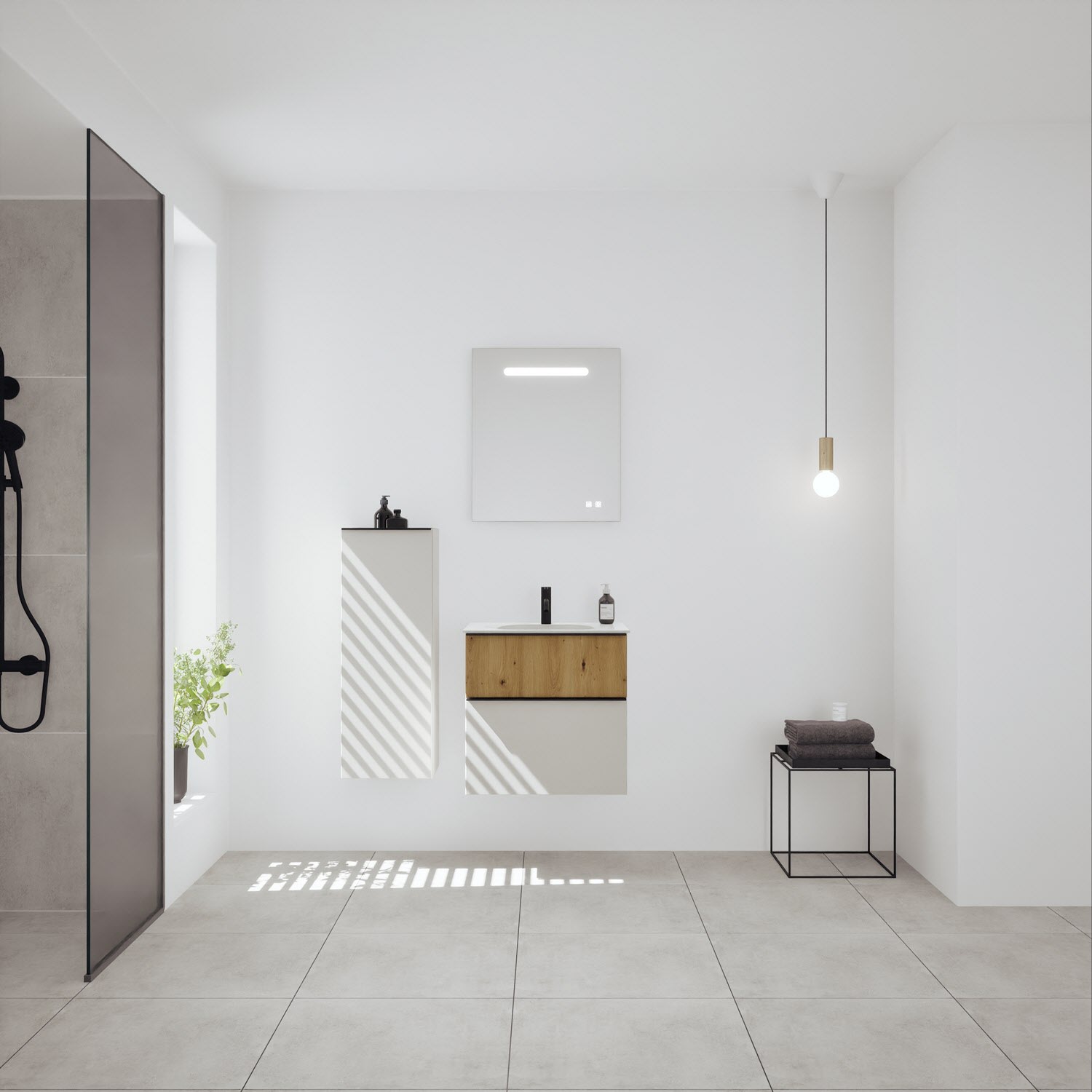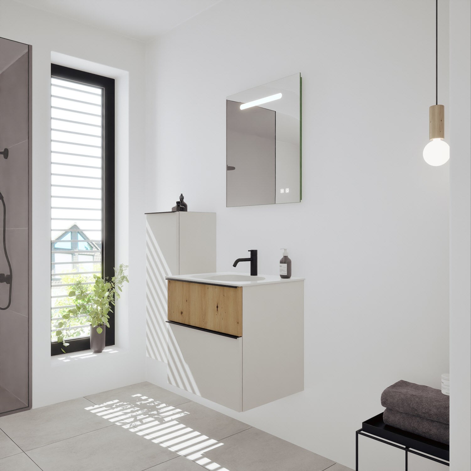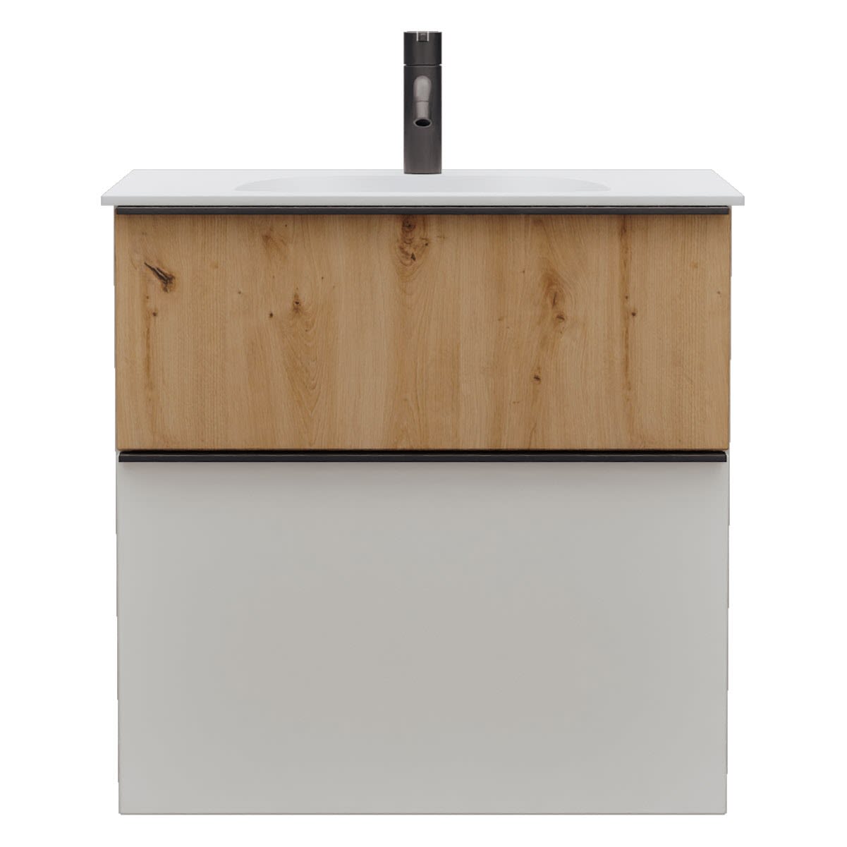 burgbad Fiumo 2.0 Mineralguss-Waschtisch mit Waschtischunterschrank 62 cm, mit Griff G0200